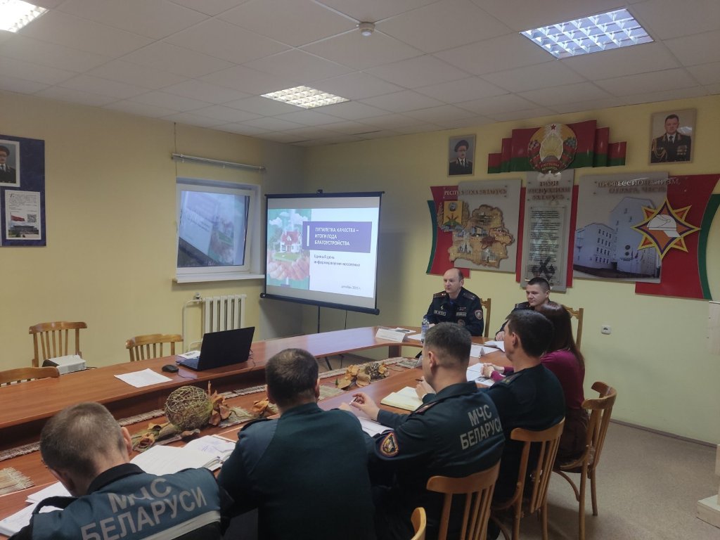 В Шкловском районном отделе по чрезвычайным ситуациям прошел Единый день информирования. Тема дня информирования звучала так: «Пятилетка качества — итоги Года благоустройства». Участие в нем приняли начальник отдела идеологической работы и по делам молодежи Шкловского райисполкома Оксана Дорогонько, начальник отдела идеологической работы учреждения «Могилевское областное управление МЧС» Денис Бриневец, начальник Шкловского РОЧС Максим Кашо.