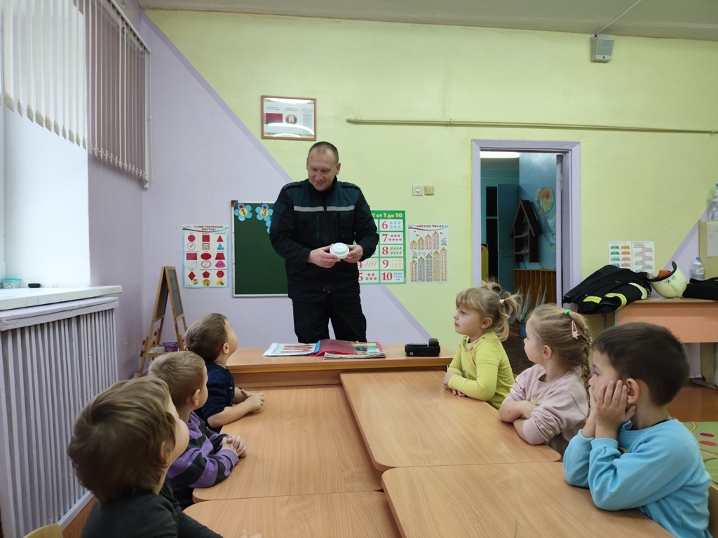 В ГУО «Детский сад № 8г. Шклова» прошло важное и интересное мероприятие — к малышам в гости пришёл работник Шкловского РОЧС.