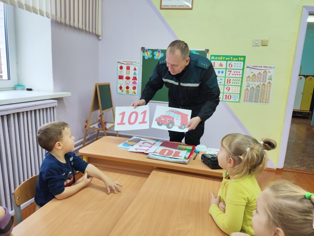 Встреча прошла в формате, понятном даже самым маленьким и была посвящена основам безопасности жизнедеятельности. Работник МЧС в доступной форме объяснил детям: почему нельзя трогать спички и зажигалки, как нужно действовать, если почувствовал запах дыма, почему нельзя прятаться при пожаре, как вызвать спасателей по телефону 101.