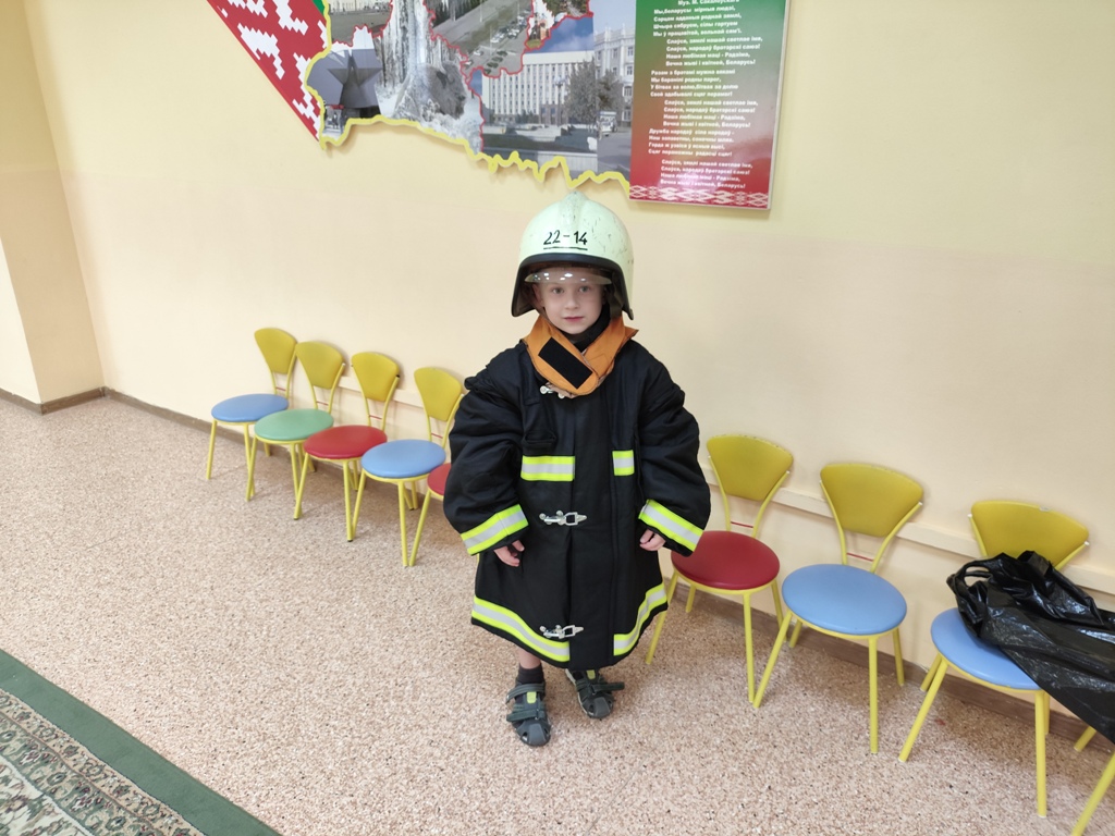 В завершении мероприятия ребята примерили настоящую каску и одежду спасателей.