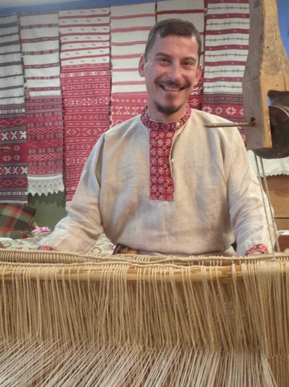 А не так даўно Юрый здзейсніў паездку ў Бранскую вобласць, у Новазыбкаў, дзе ў Доме народнага творчасці пазнаёміўся з майстрам Аляксеем Беласам. Там Юрый убачыў працэс ткацтва, пачуў аповед пра арнаменты і нават сам сеў за кросны. Гэта сустрэча стала для яго важным досведам, які дапамог яшчэ глыбей адчуць сувязь рамяства з духоўным жыццём і традыцыямі.