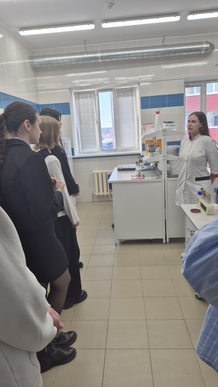 В УЗ «Шкловский райЦГЭ» идет постепенное «омоложение» коллектива: работают молодые специалисты — заведующий лабораторным отделом Ольга Осипёнок, врач-эпидемиолог Анастасия Зеброва. Они представили ребятам работу по своему направлению- микробиологическая диагностика поступающих на исследование различных материалов, противоэпидемическая работа специалистов-эпидемиологов. Старший инспектор по кадрам Лилия Королёва рассказала, куда можно пойти учиться в 2026 году по специальности медико-профилактическое дело, в том числе на условиях целевой подготовки. Причем образование можно получить как высшее (специальности врач-гигиенист, врач-эпидемиолог, врач –лаборант, врач по медицинской профилактике), так и средне- специальное по специальности медико-диагностическое дело (Могилевский государственный медицинский колледж), медико-профилактическое дело (Витебский государственный медицинский колледж).