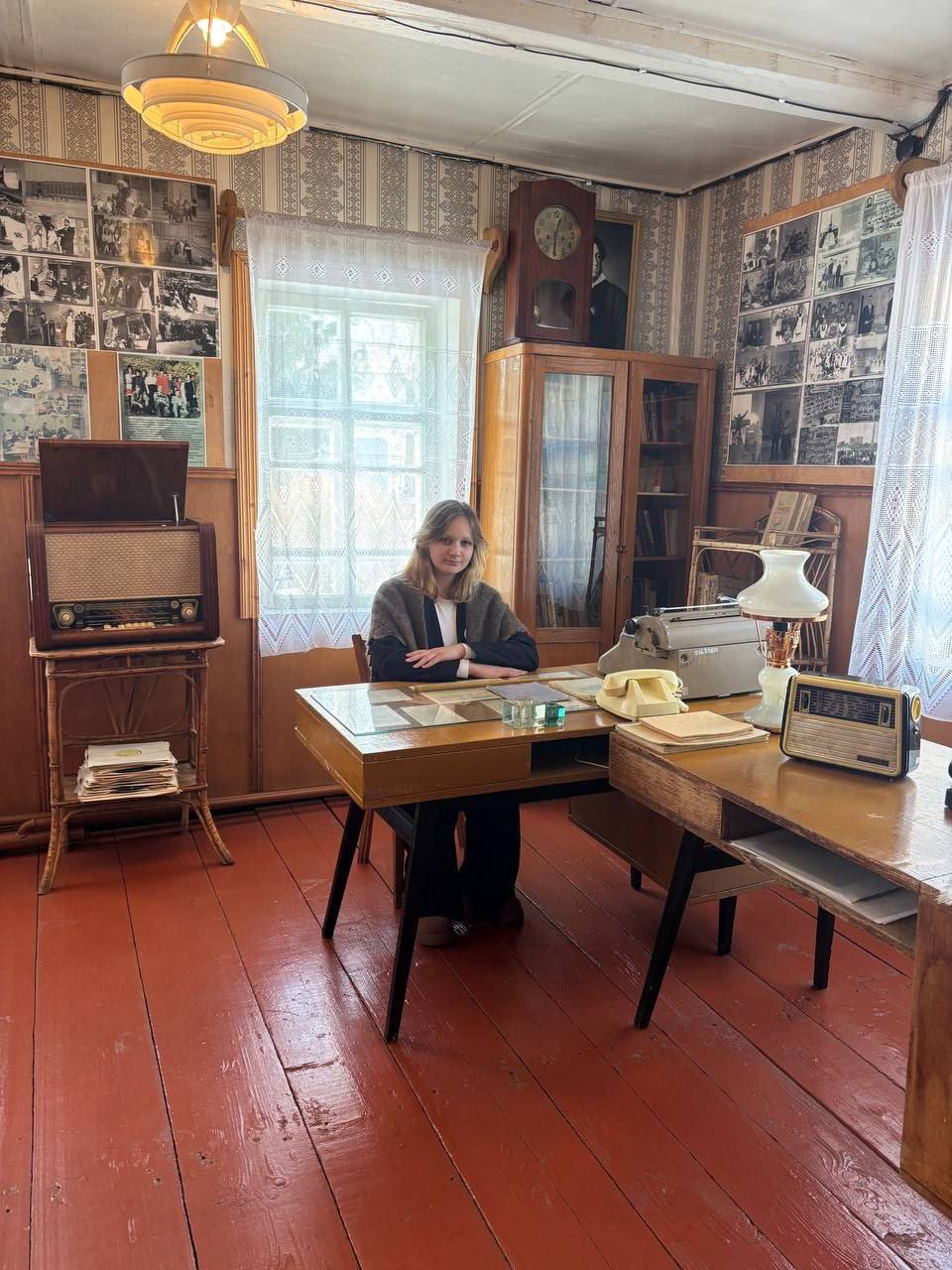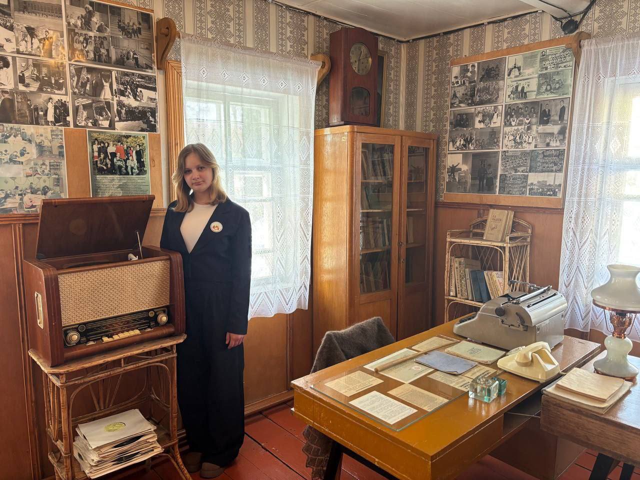 Участники конкурса представляли обзорные экскурсии по теме «Голос из прошлого», демонстрировав умение содержательно и грамотно раскрывать материалы музейных экспозиций через образы известных земляков, чья трудовая и военная деятельность имеет историческую значимость. Мария блестяще раскрыла материалы экспозиции «Советская школа», выступив в образе педагога‑ветерана Татьяны Николаевны Карпеченко.