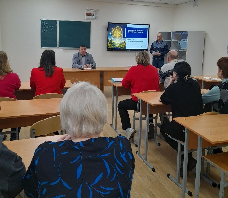 Работникам рассказали о том, какой путь прошла наша страна, восстанавливая жизнь на пострадавших после аварии на Чернобыльской АЭС территориях, как благодаря государству состоялась реабилитация и возрождение пострадавших территорий, переход их к устойчивому социально-экономическому развитию.