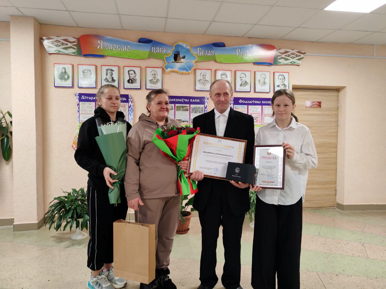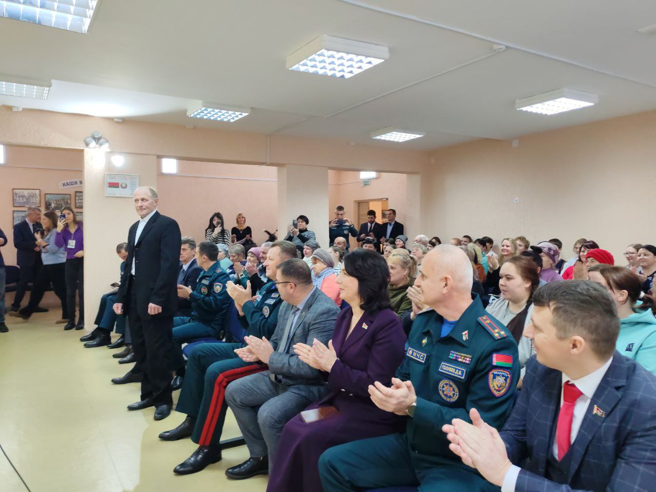На мероприятии также присутствуют члены коллектива КСУП «Овсянка имени И.И. Мельника», где работает Сергей Шиндиков и педагоги Овсянковской школы.