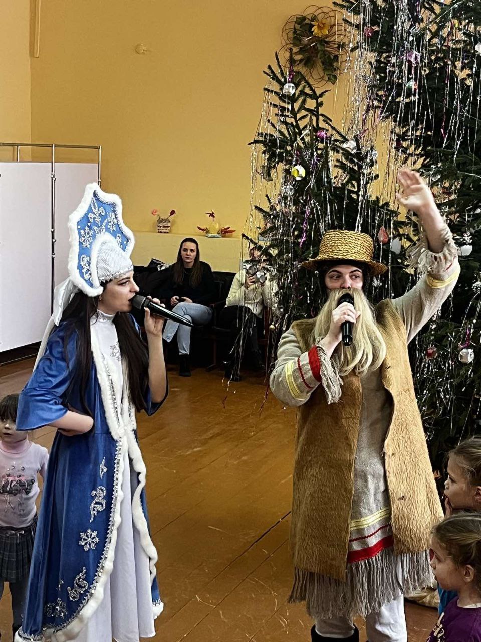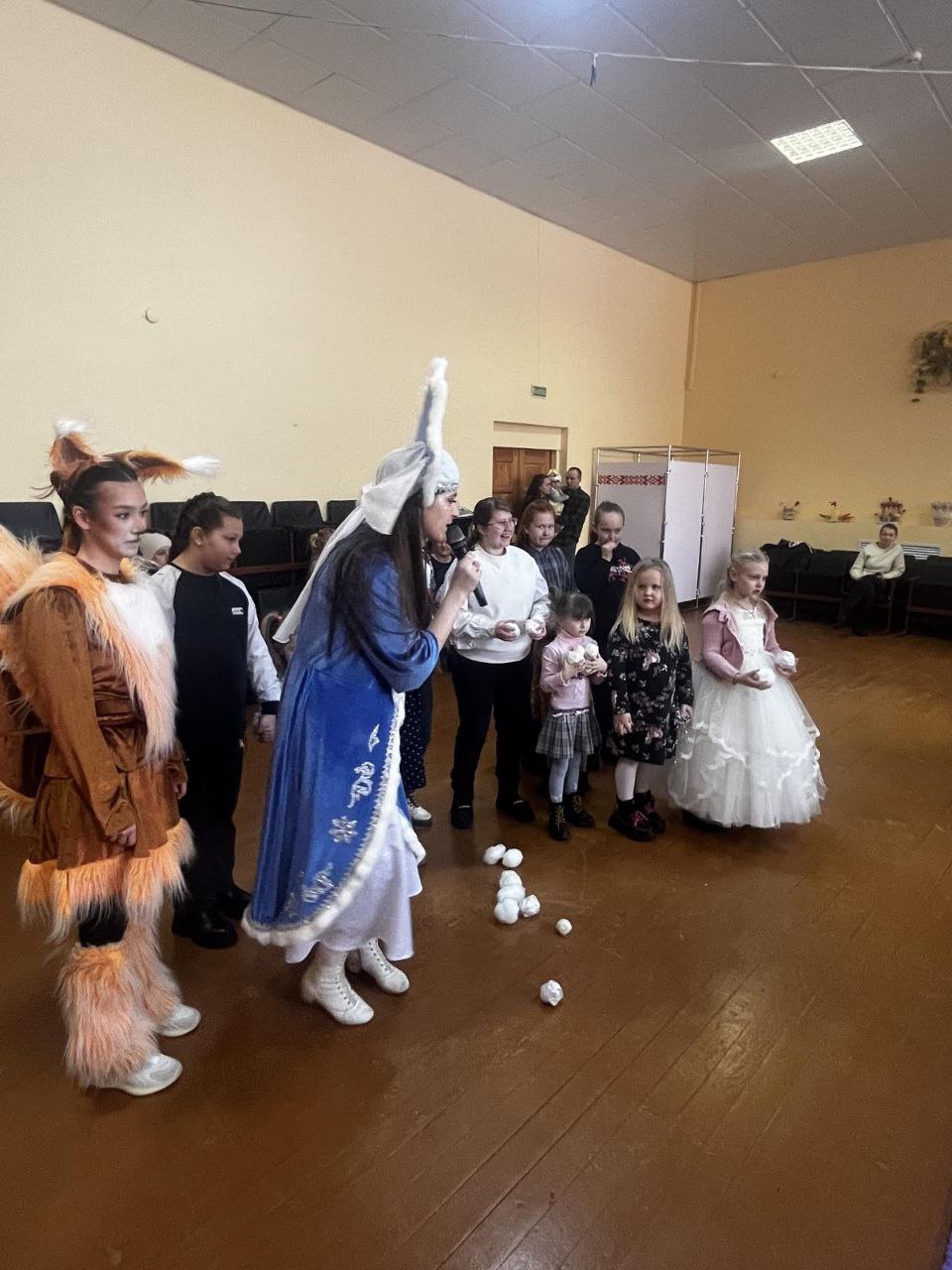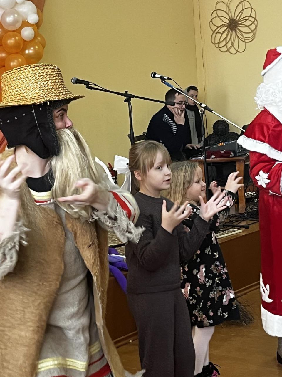 На сцене ожила добрая сказка: яркие костюмы, музыка и танцы переплелись с историей о дружбе и взаимопомощи. Ребята вместе с героями играли, пели, водили хороводы и читали стихи Деду Морозу и Снегурочке.