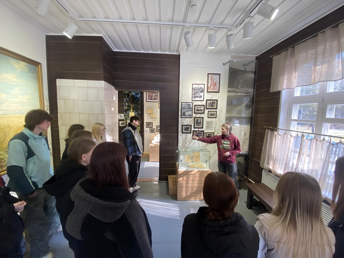 В рамках работы клуба «Патриот» студенты вместе с руководителем по военно‑патриотическому воспитанию Гавриленко С. Р. совершили познавательную поездку в филиал Государственного литературного музея Янки Купалы.