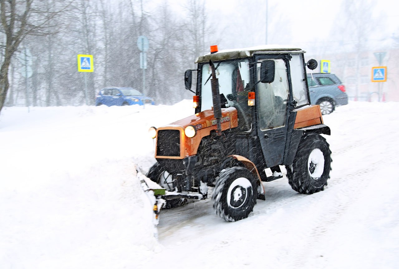 Работает техника коммунальных и дорожных служб, организаций.