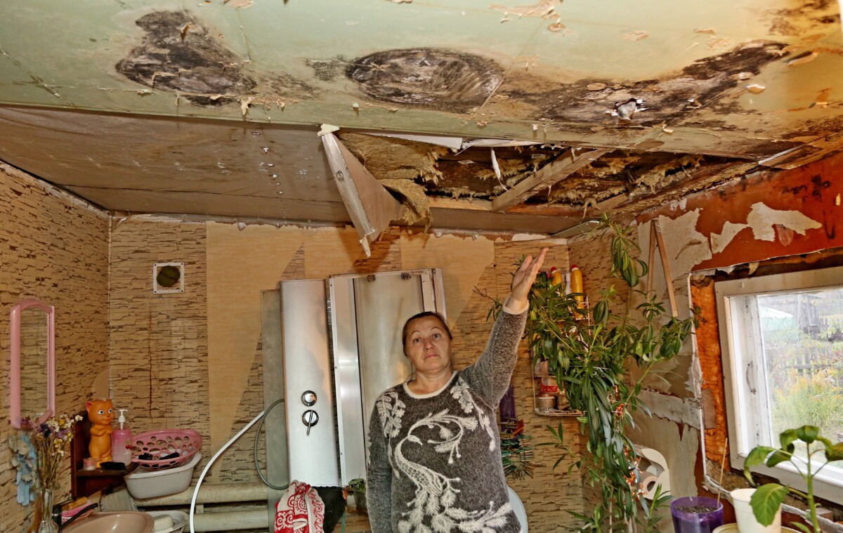 – Арендное жилье я получила в мае этого года. Летом планировали сделать небольшой ремонт в санузле. На потолке было влажное пятно, решили проверить, откуда сырость. Только дотронулись до потолка, и часть его рухнула, образовав большую дыру, с которой стекала грязная вода с кусками пленки. В результате, в помещении пользоваться душевой кабиной мы не могли, там было холодно. Самим проводить ремонт смысла не было, так как протекала кровля. Вот и решила обратиться к Сергею Ивановичу с просьбой нам помочь, – рассказывает Светлана Борисовна.
