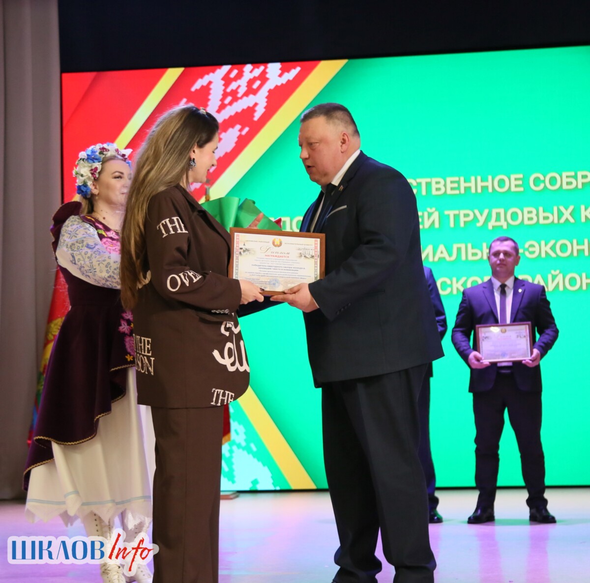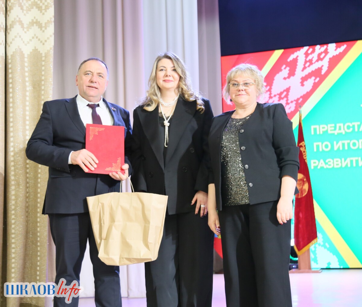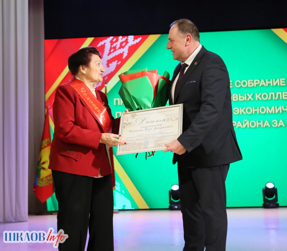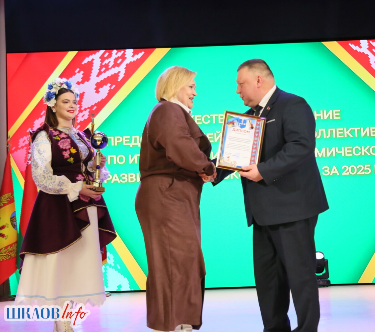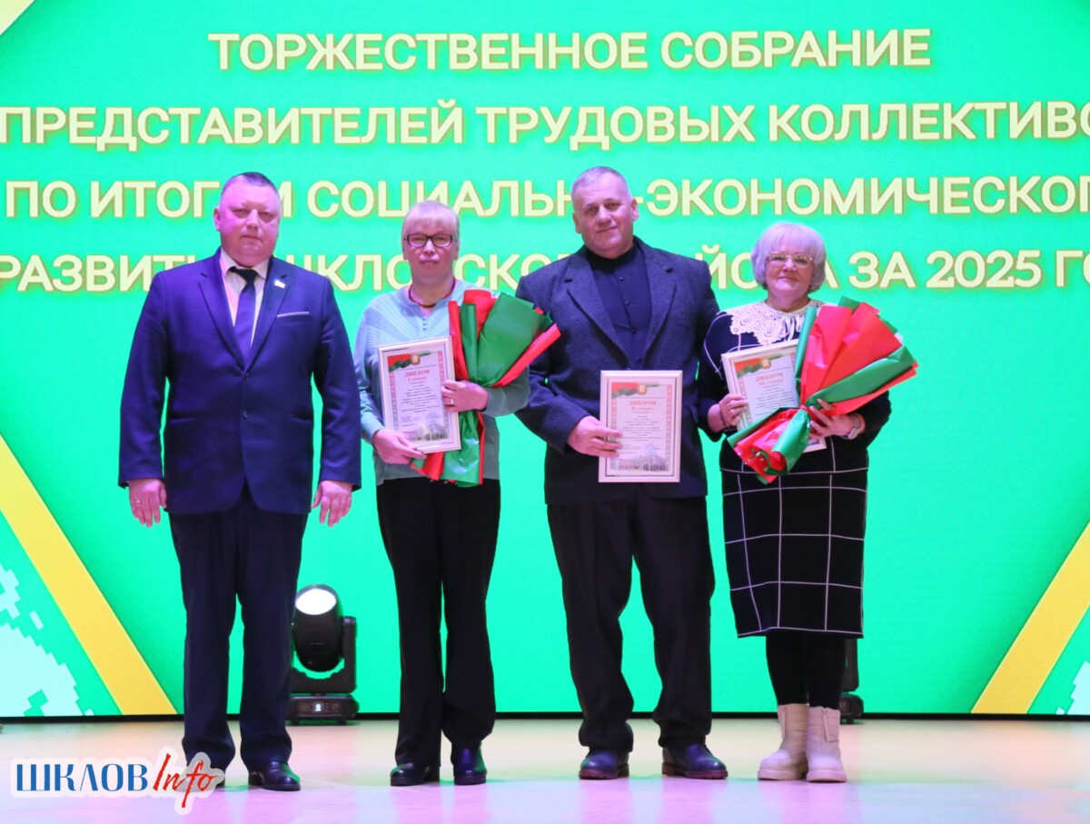 В ходе торжественного мероприятия награждены лучшие коллективы и труженики Шкловщины по итогам 2025 года. Звание «Человек года» присуждено директору ЗАО «Большие Славени» Ивану Барташевичу и ветерану труда Вере Костенко.