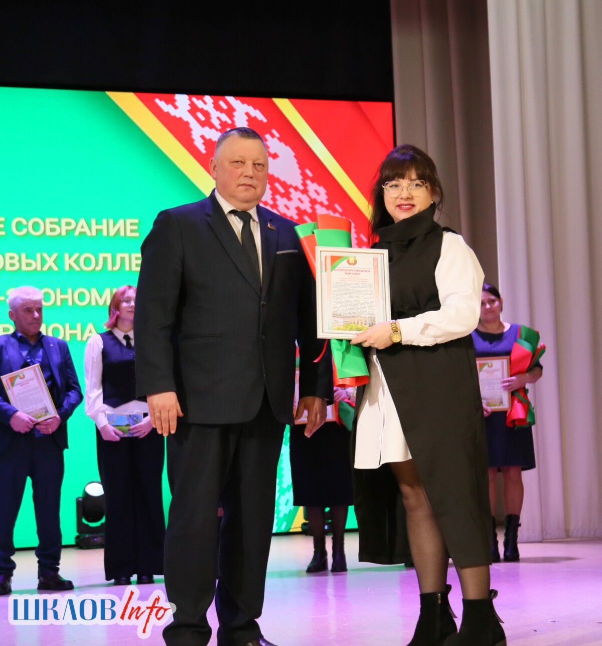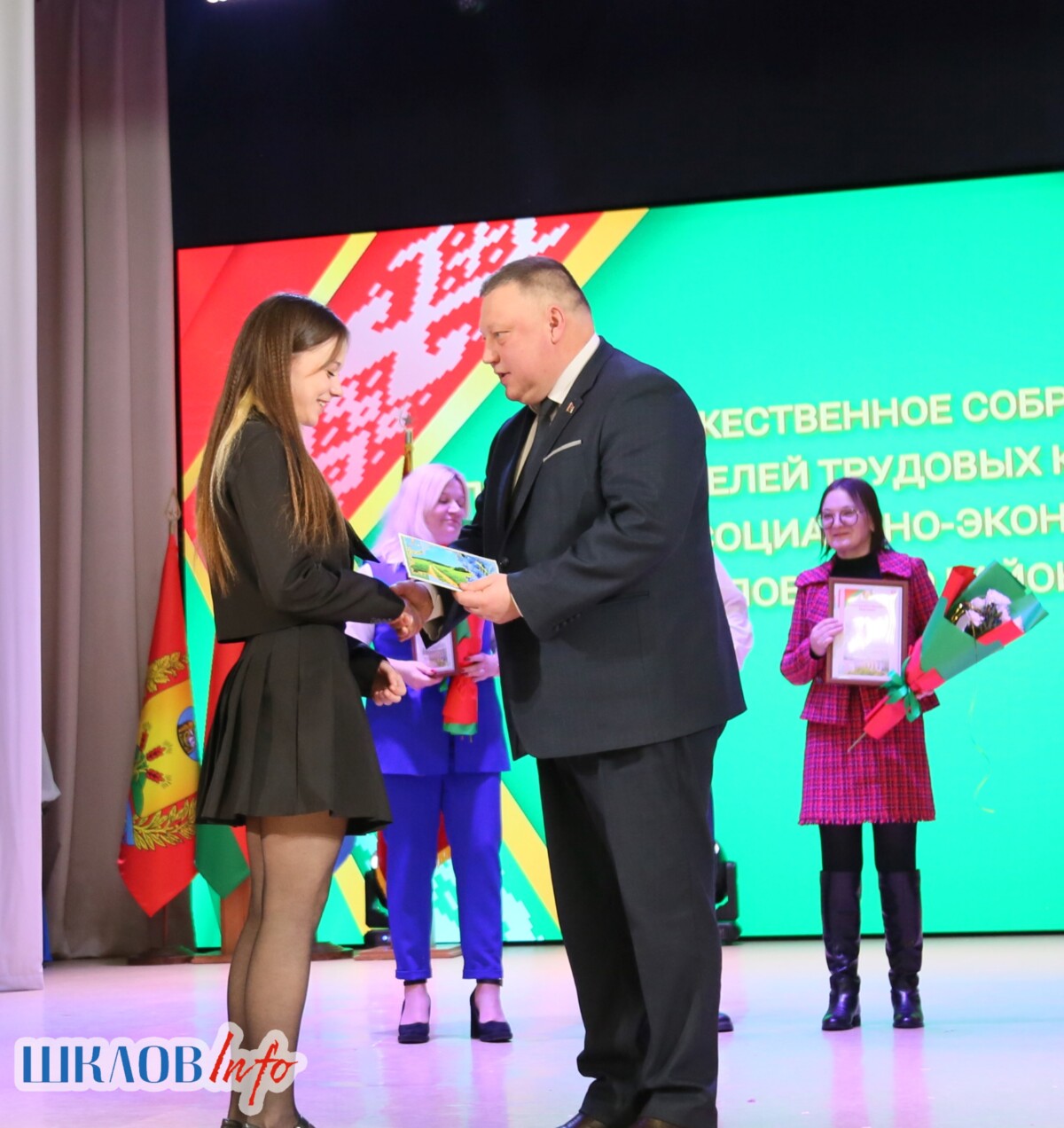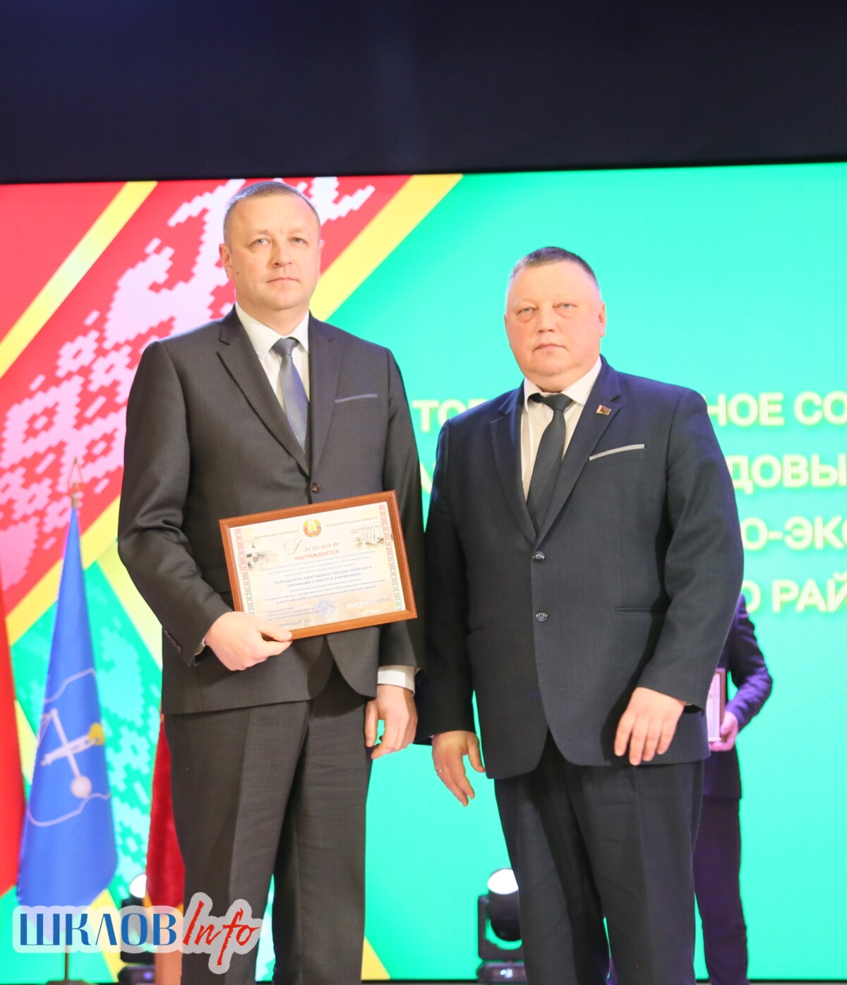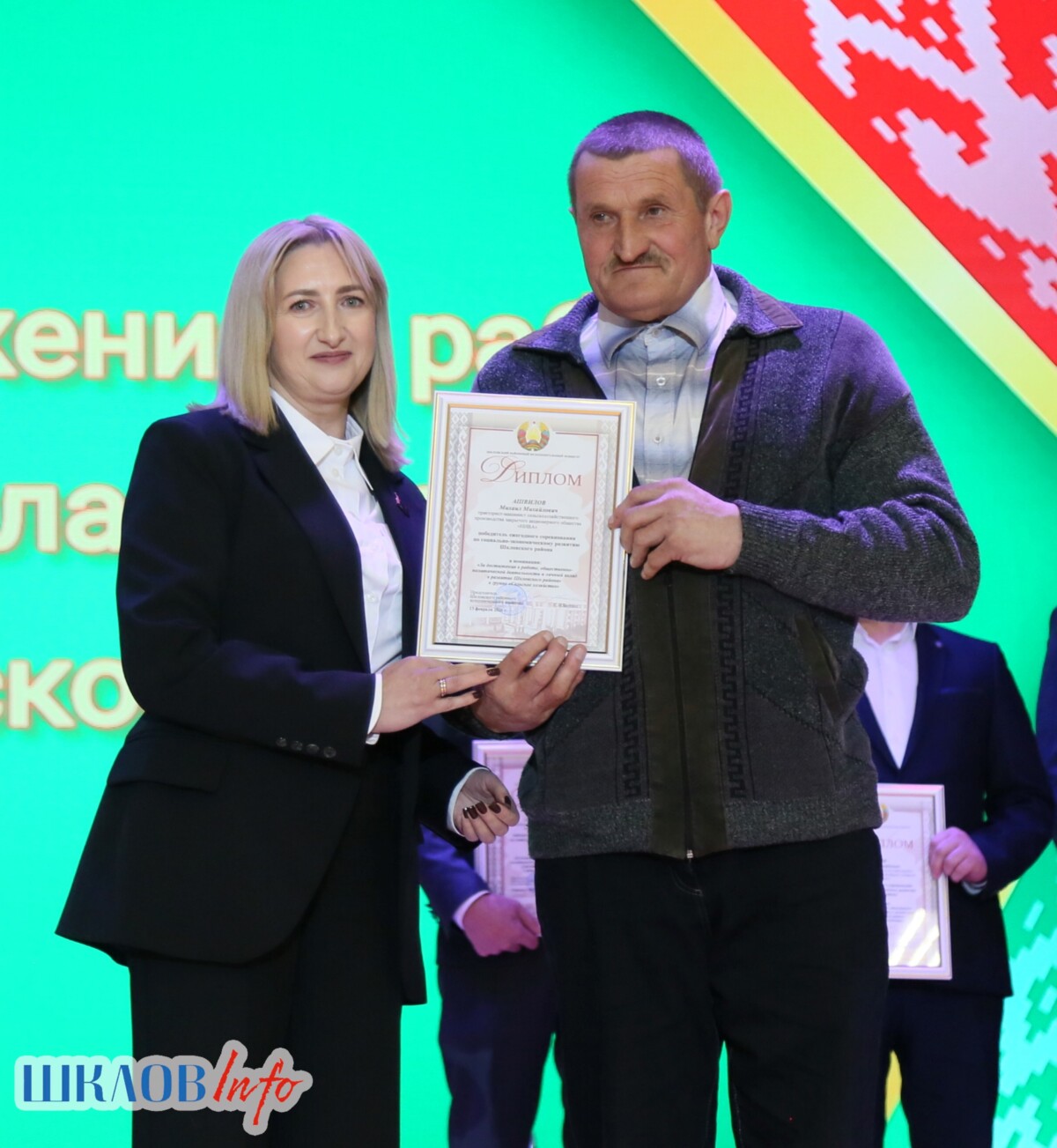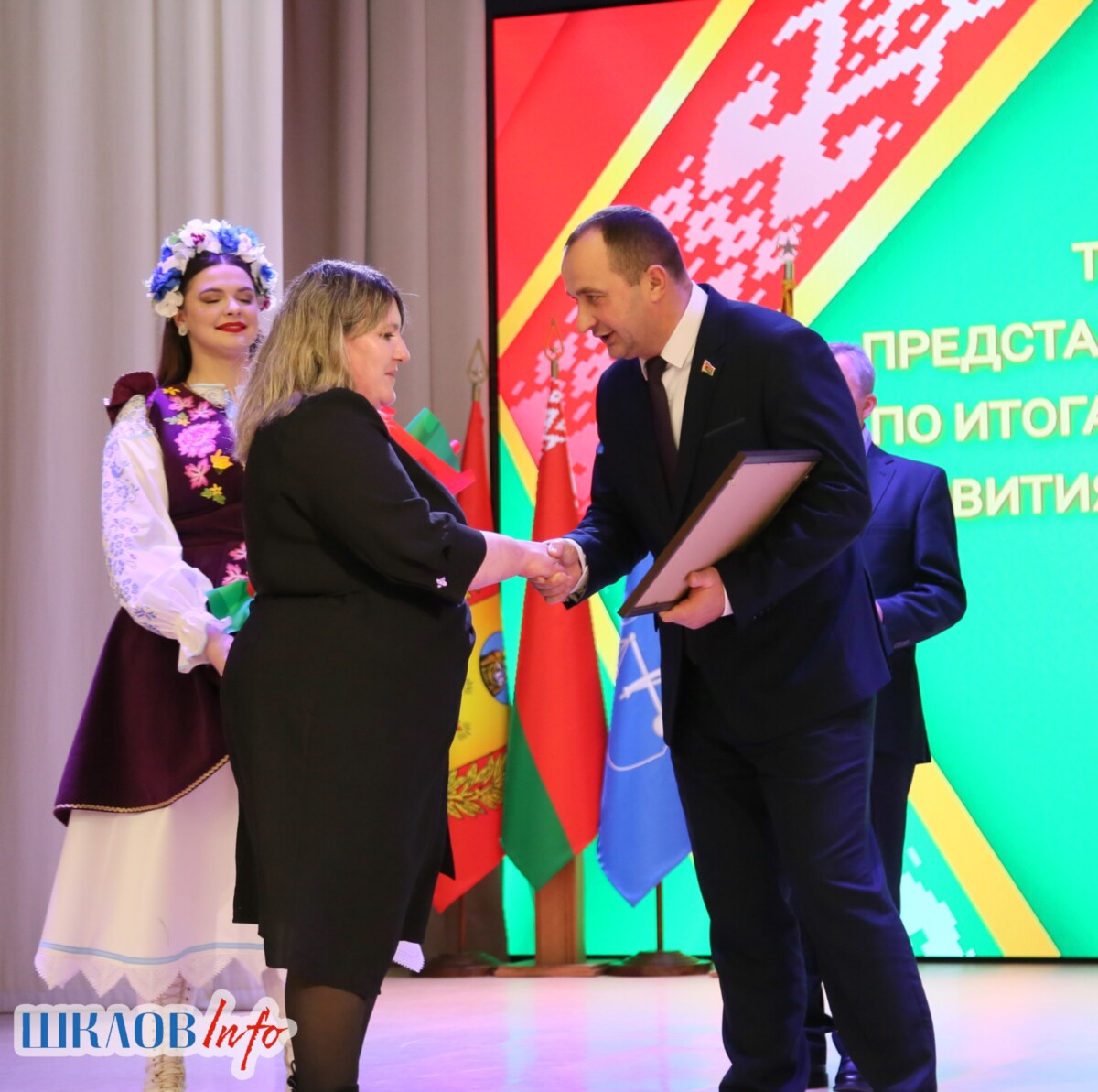 В ходе торжественного мероприятия награждены лучшие коллективы и труженики Шкловщины по итогам 2025 года. Звание «Человек года» присуждено директору ЗАО «Большие Славени» Ивану Барташевичу и ветерану труда Вере Костенко.