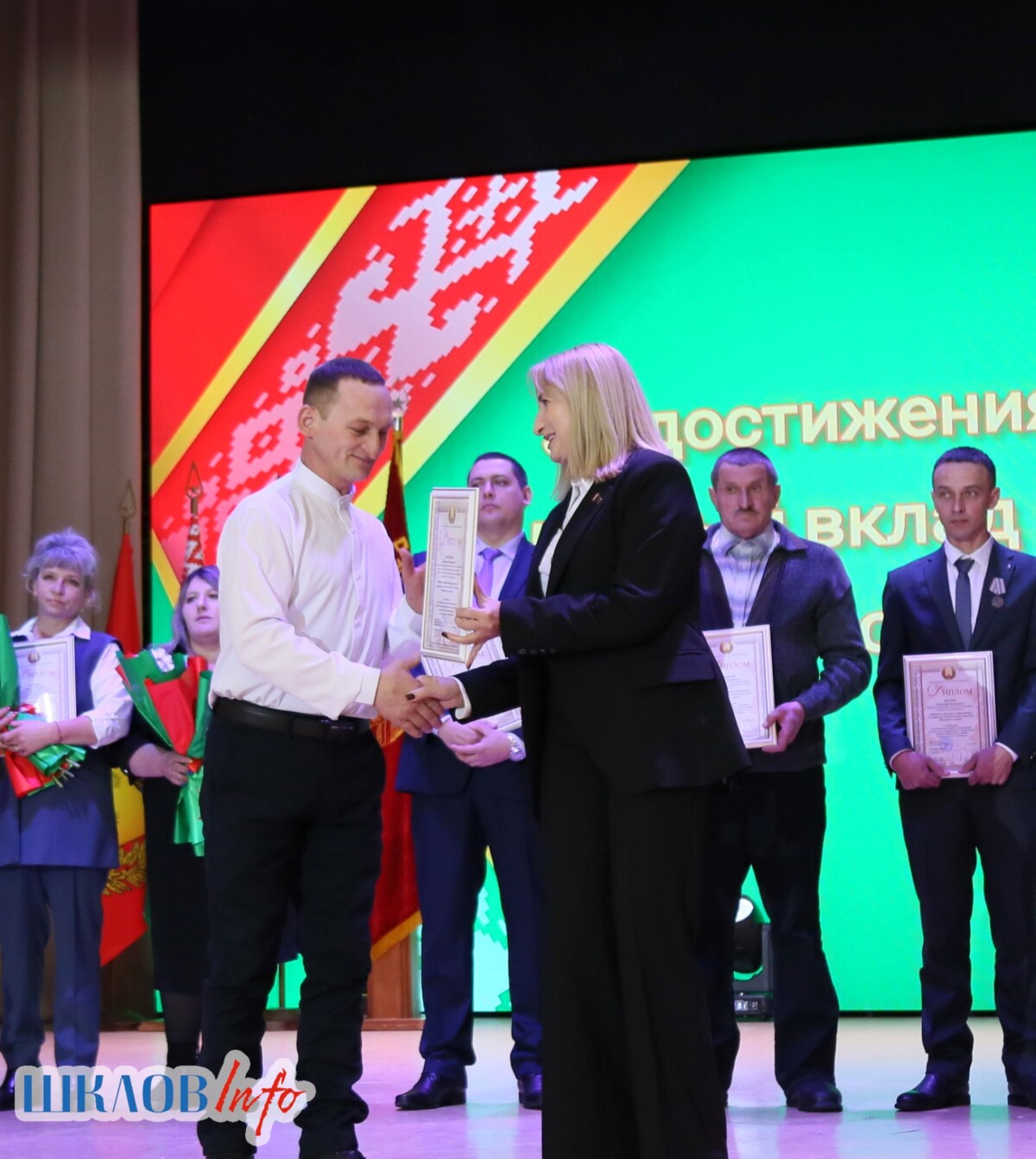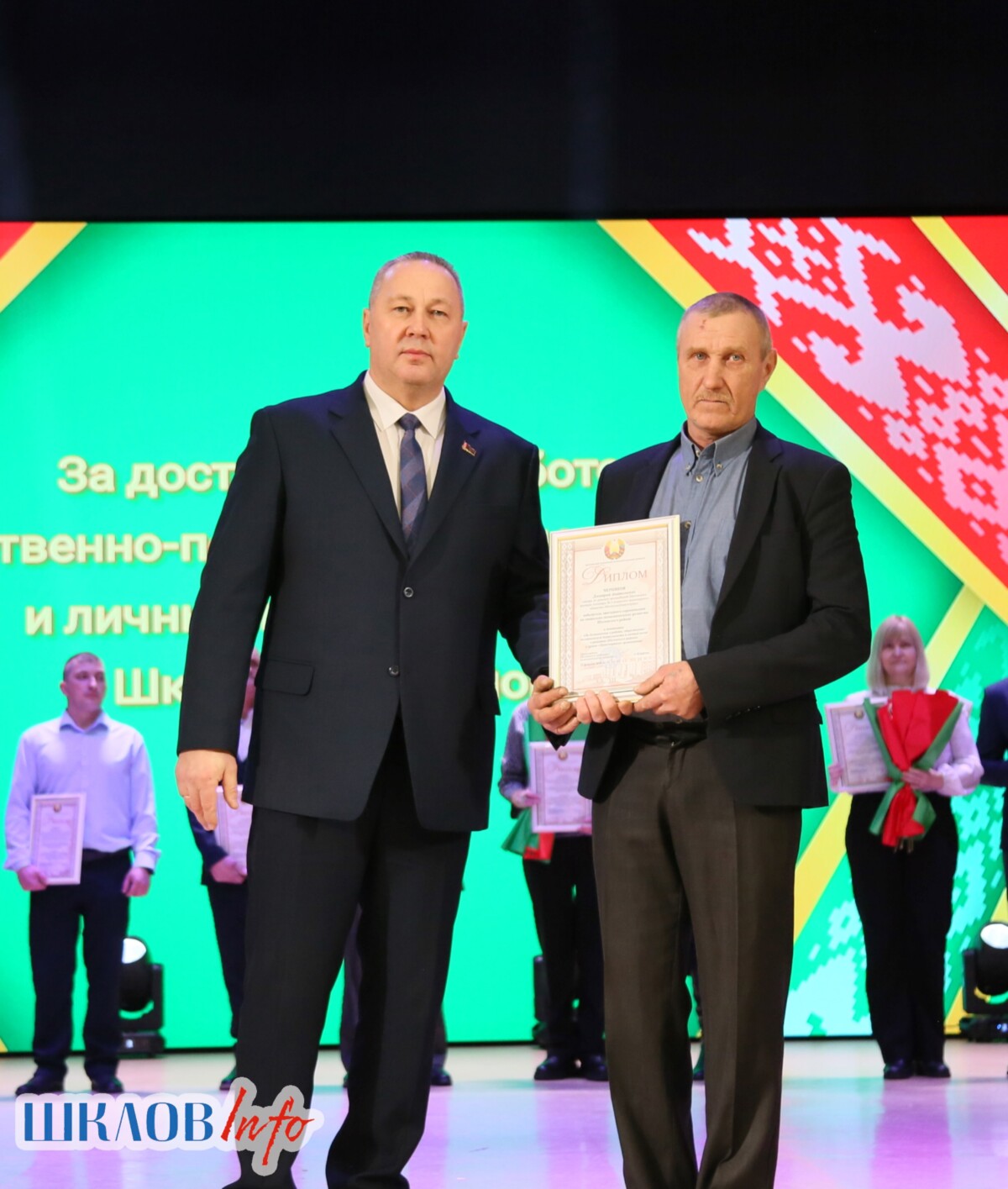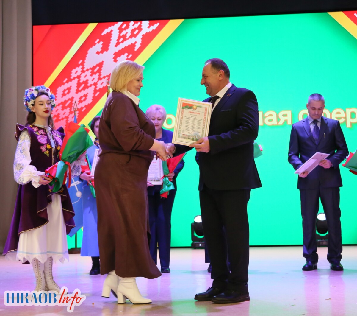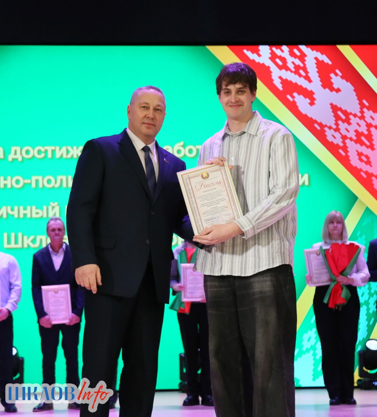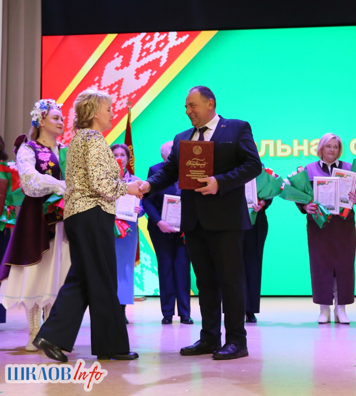 В ходе торжественного мероприятия награждены лучшие коллективы и труженики Шкловщины по итогам 2025 года. Звание «Человек года» присуждено директору ЗАО «Большие Славени» Ивану Барташевичу и ветерану труда Вере Костенко.