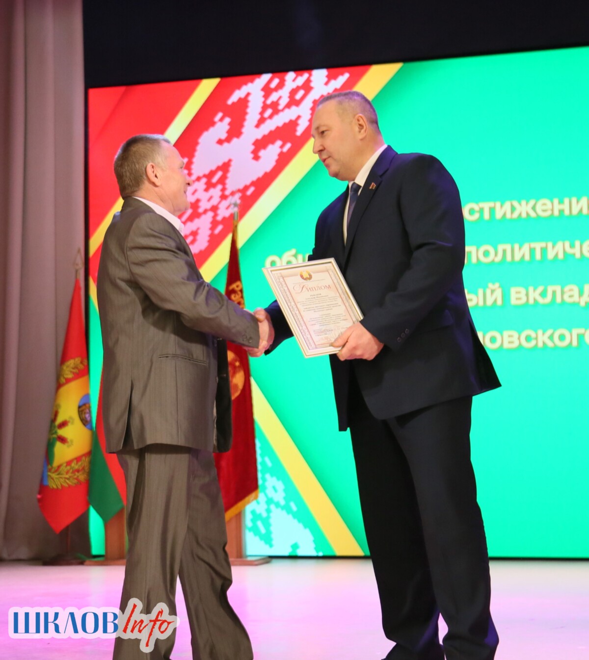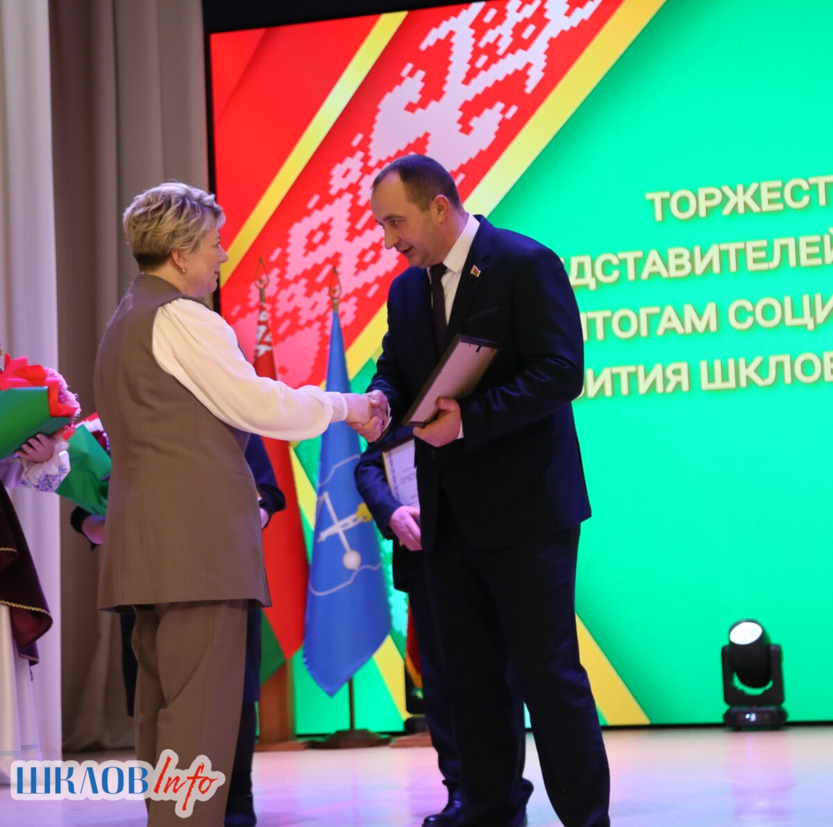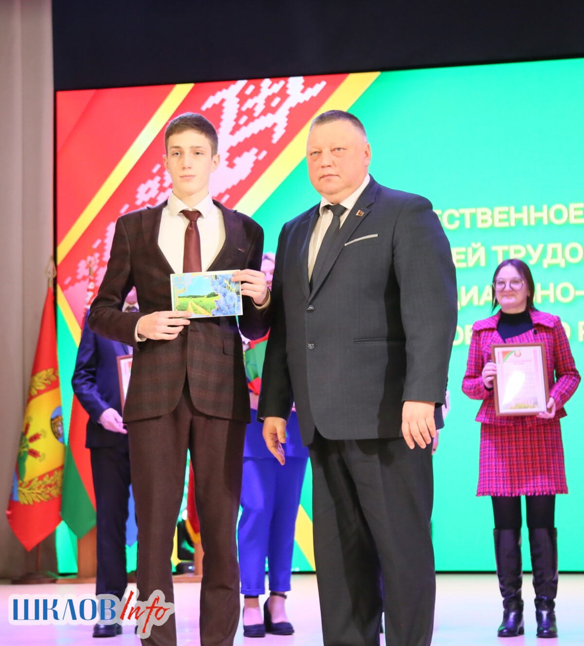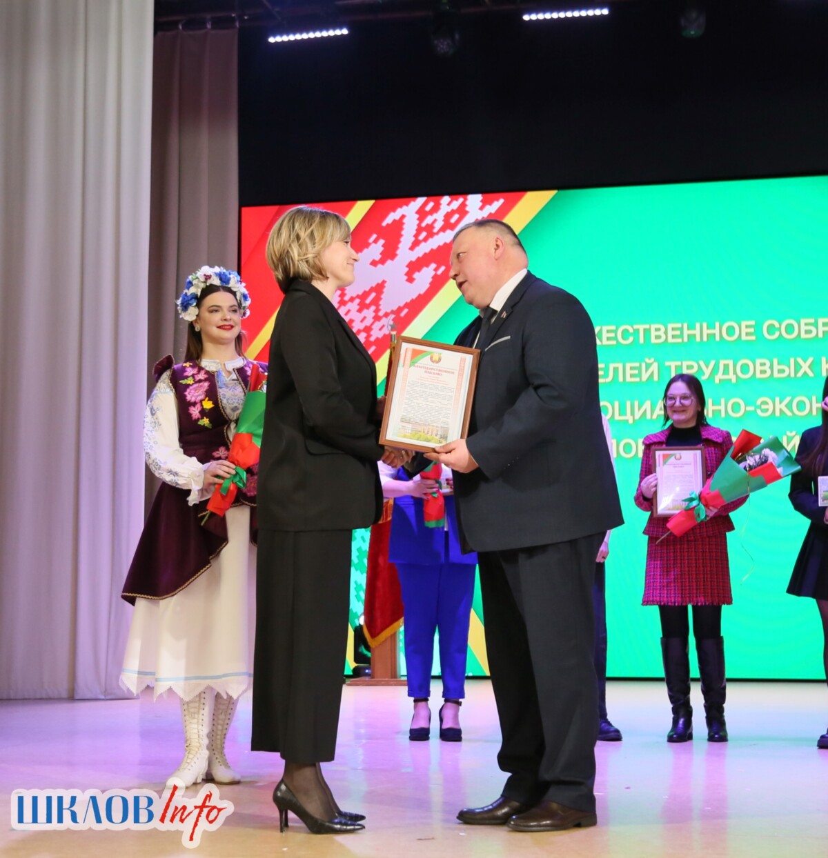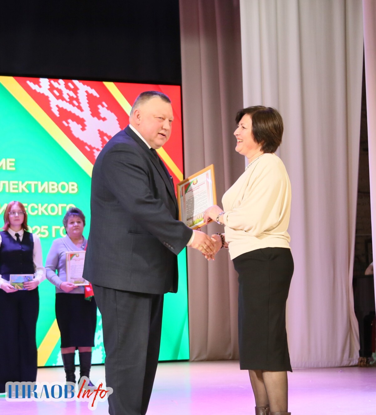 В ходе торжественного мероприятия награждены лучшие коллективы и труженики Шкловщины по итогам 2025 года. Звание «Человек года» присуждено директору ЗАО «Большие Славени» Ивану Барташевичу и ветерану труда Вере Костенко.