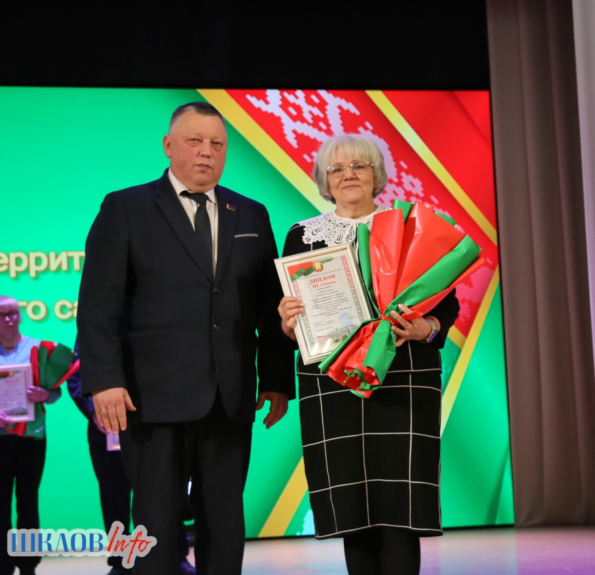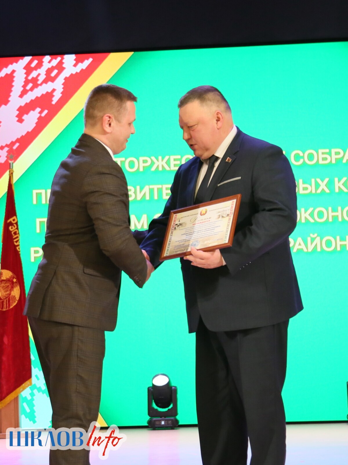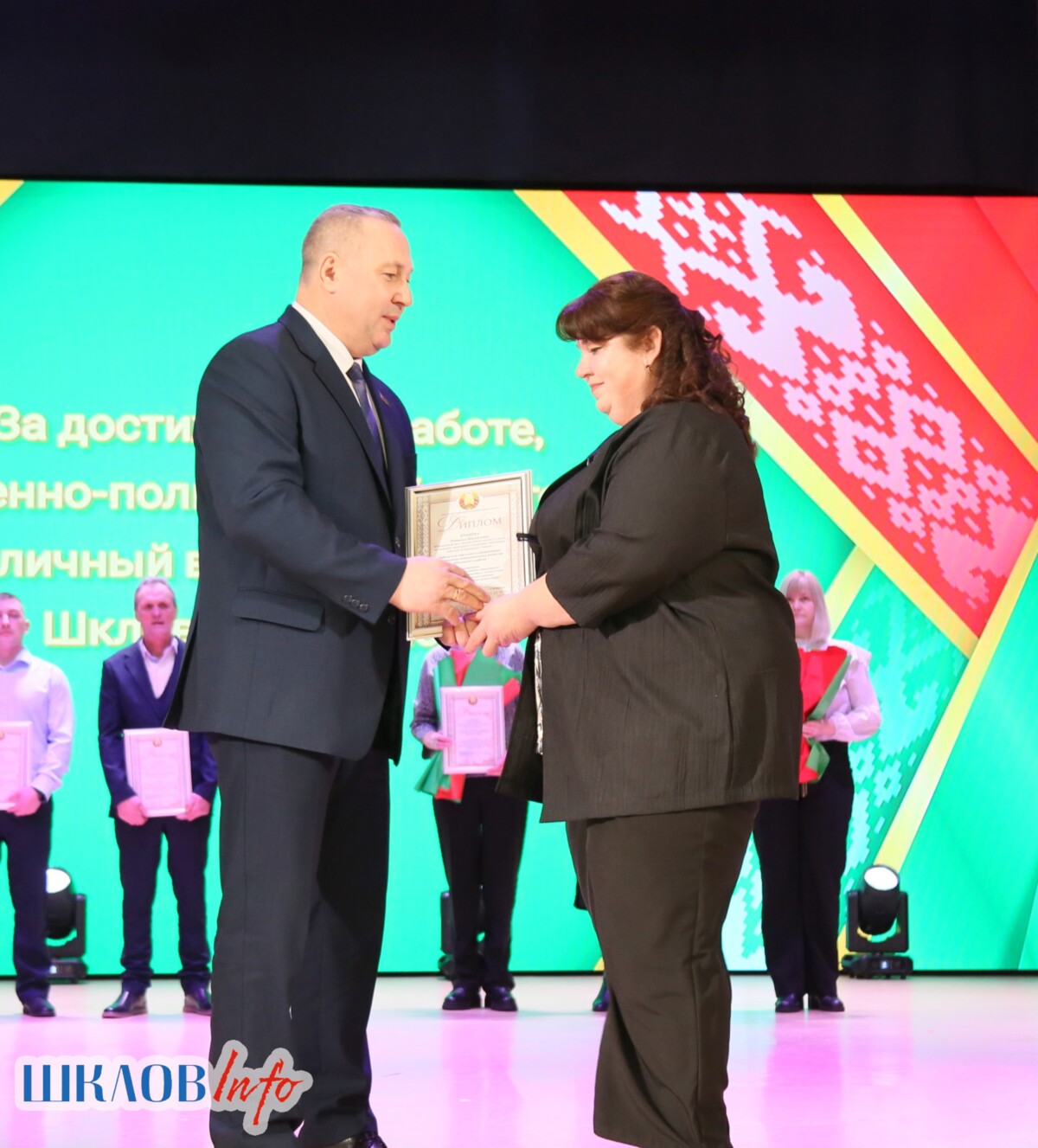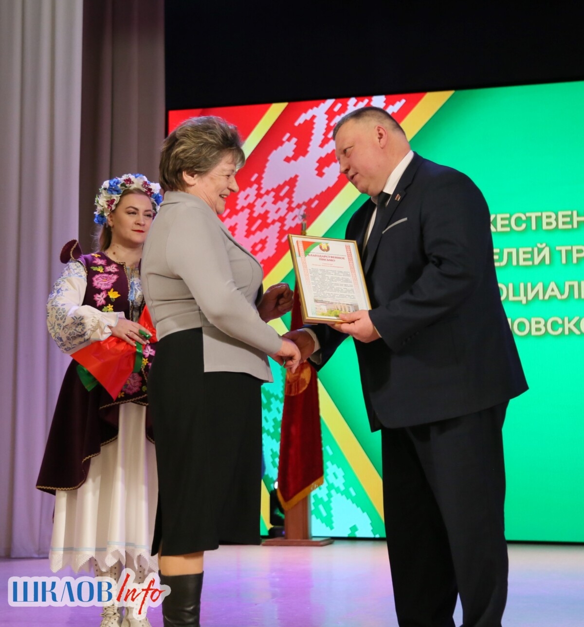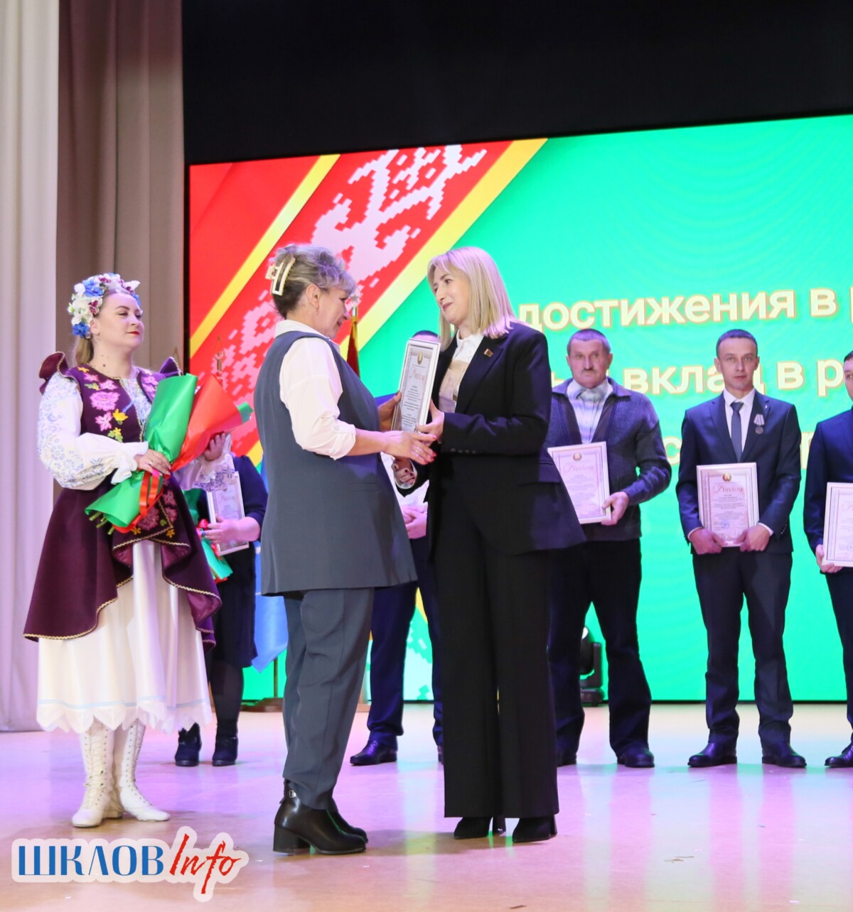 В ходе торжественного мероприятия награждены лучшие коллективы и труженики Шкловщины по итогам 2025 года. Звание «Человек года» присуждено директору ЗАО «Большие Славени» Ивану Барташевичу и ветерану труда Вере Костенко.