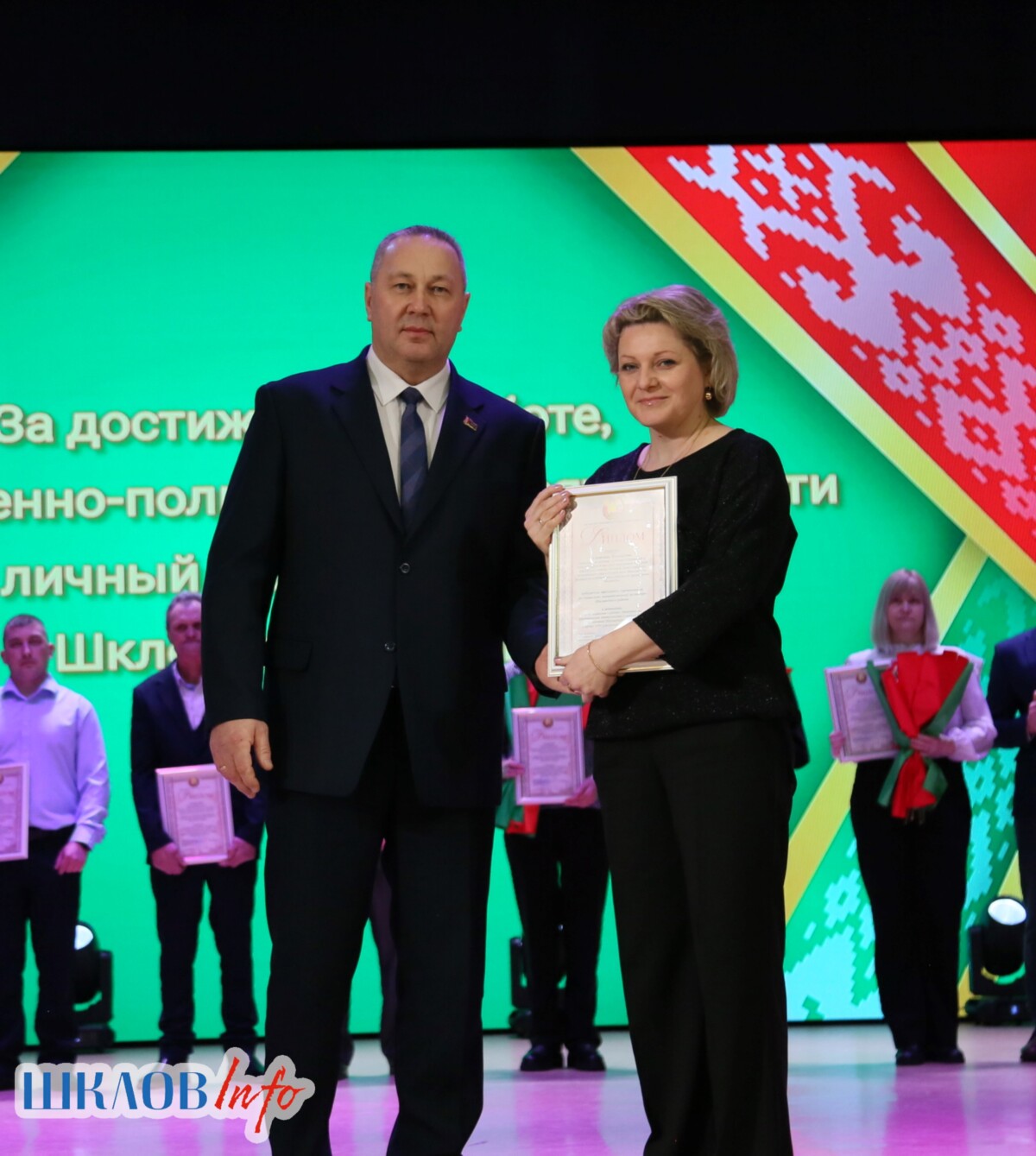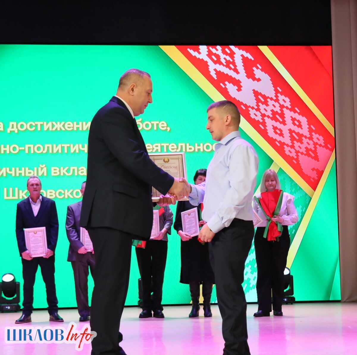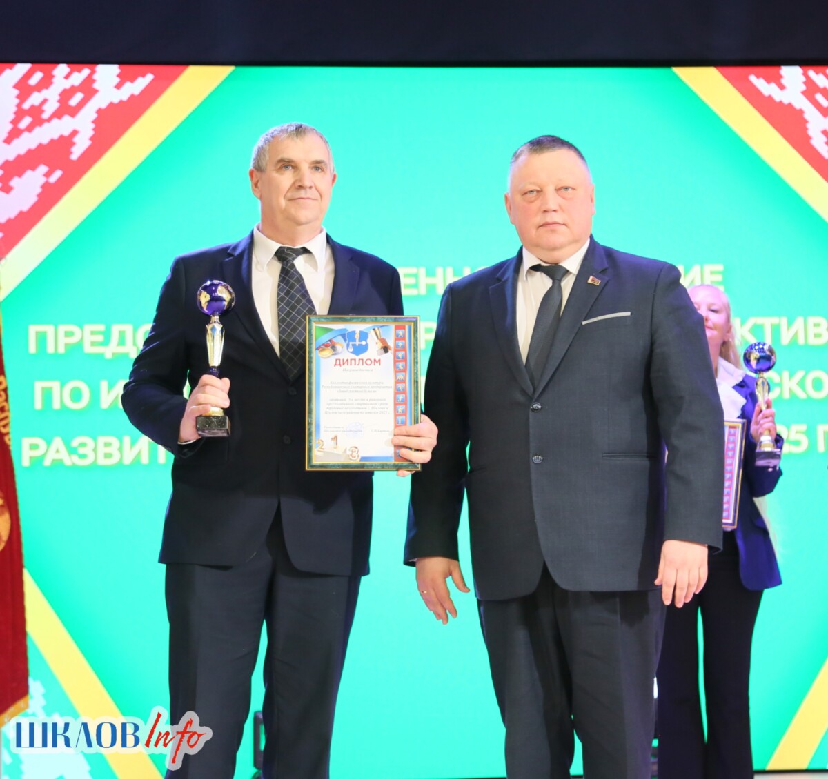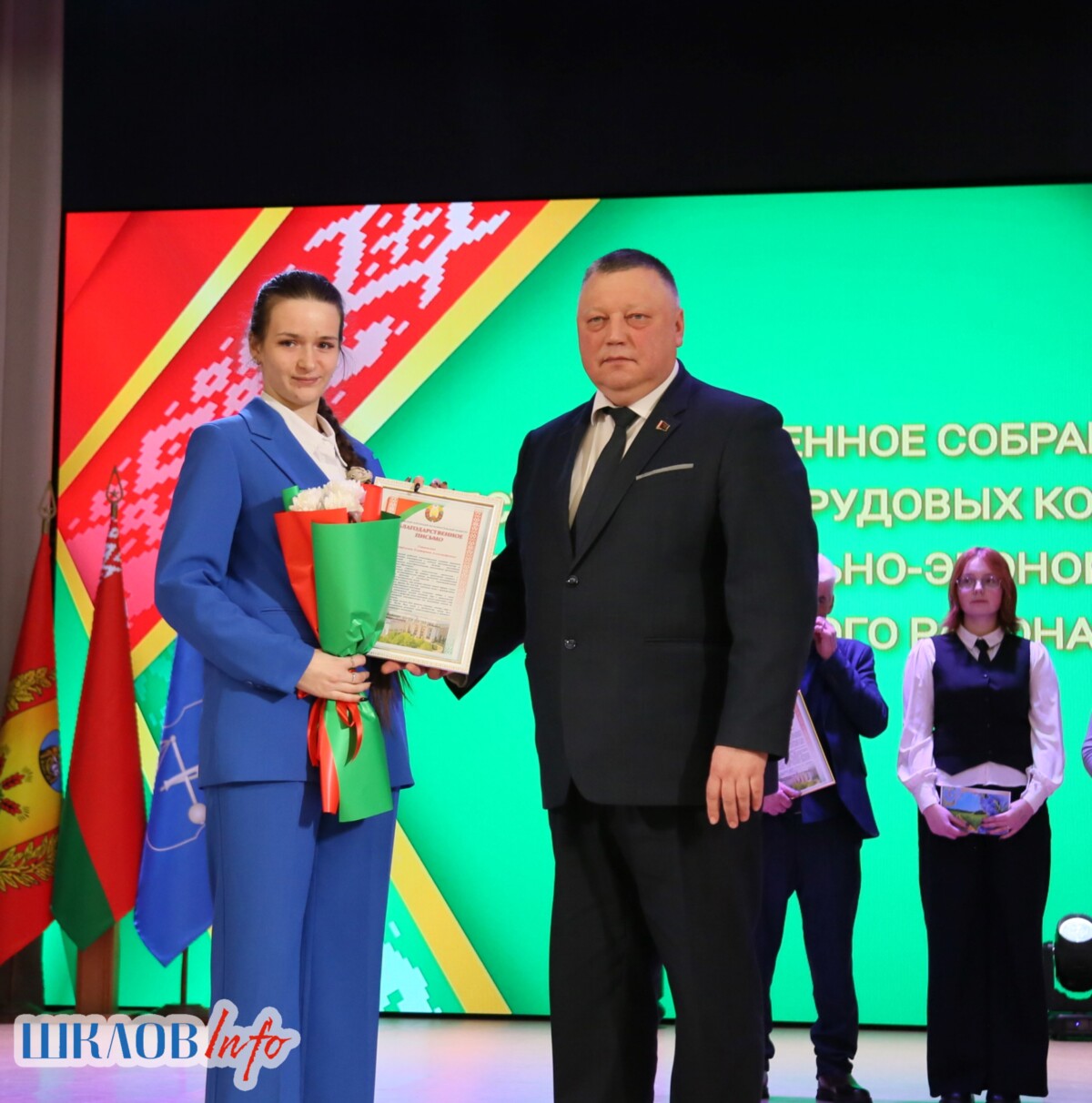 В ходе торжественного мероприятия награждены лучшие коллективы и труженики Шкловщины по итогам 2025 года. Звание «Человек года» присуждено директору ЗАО «Большие Славени» Ивану Барташевичу и ветерану труда Вере Костенко.