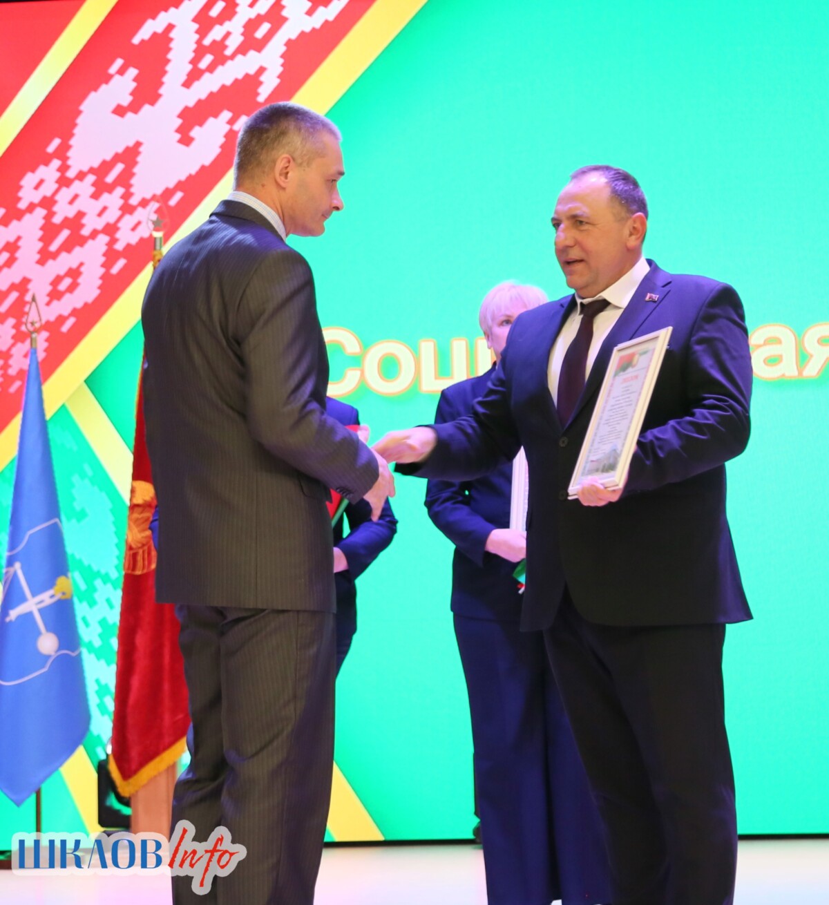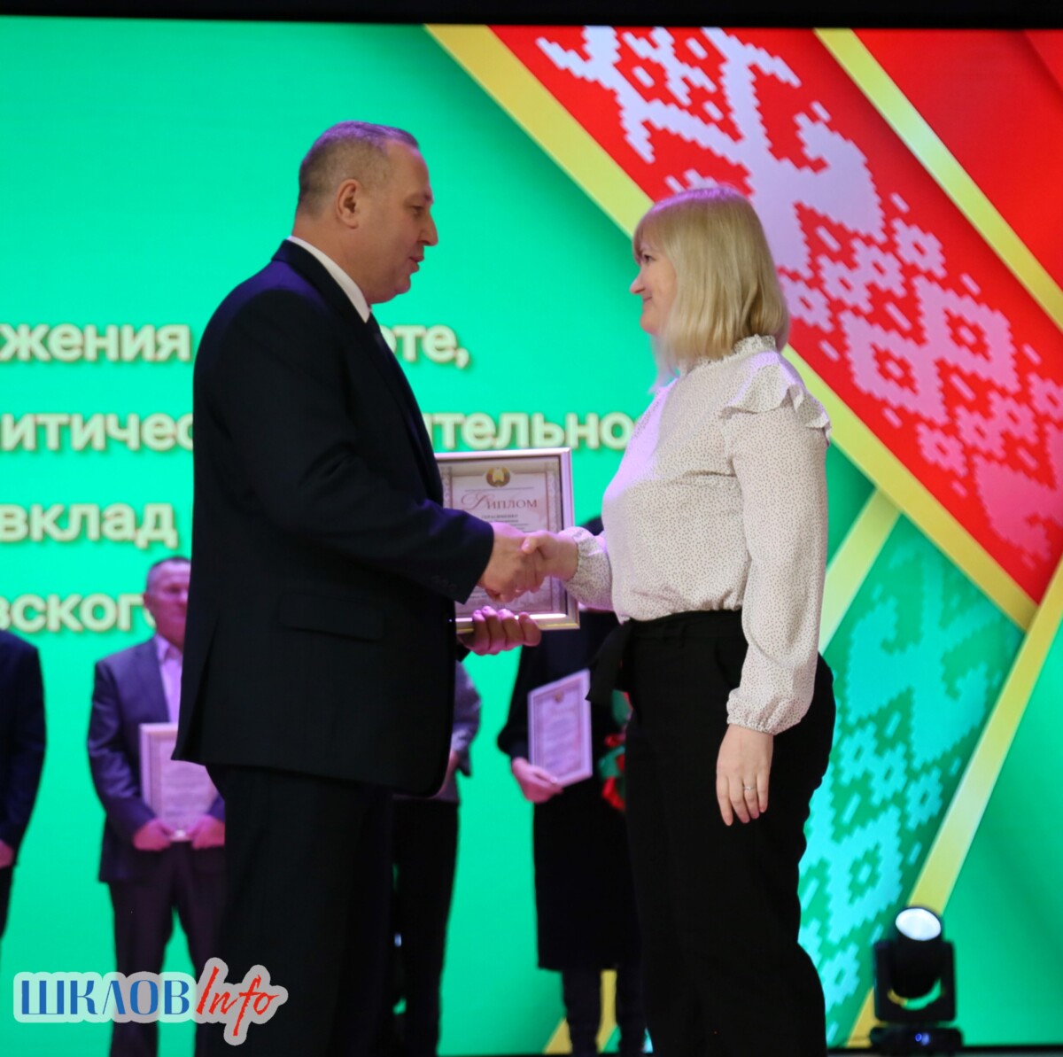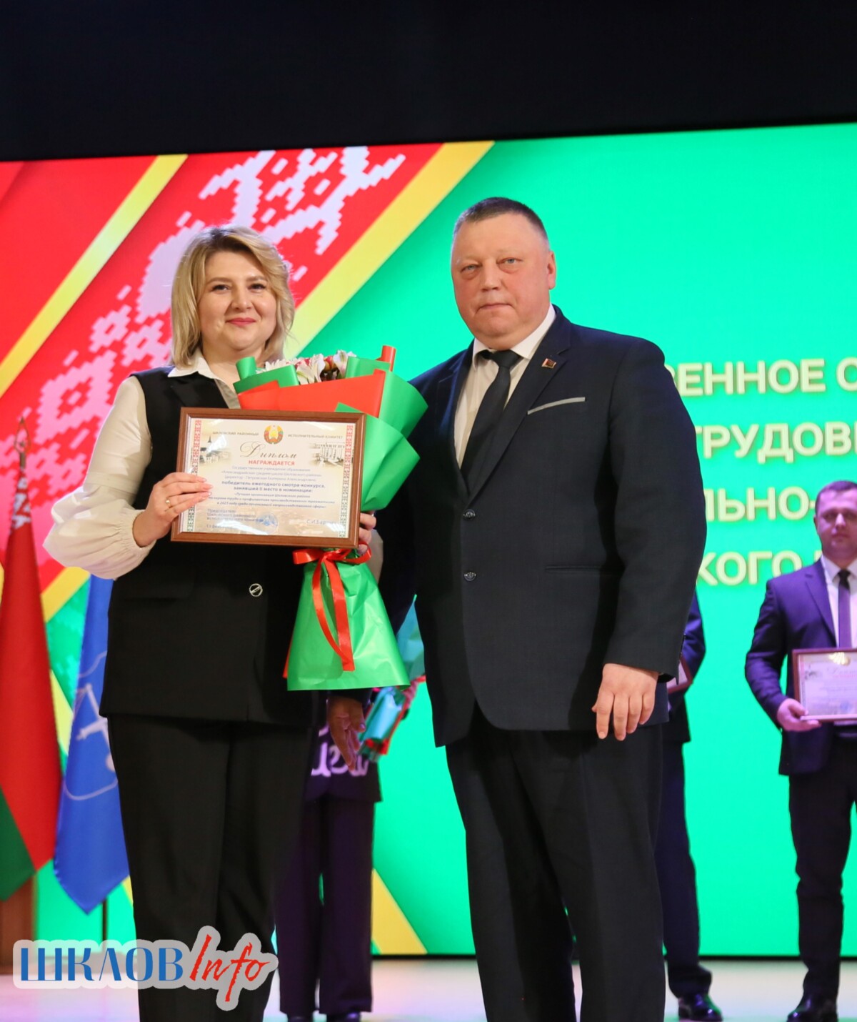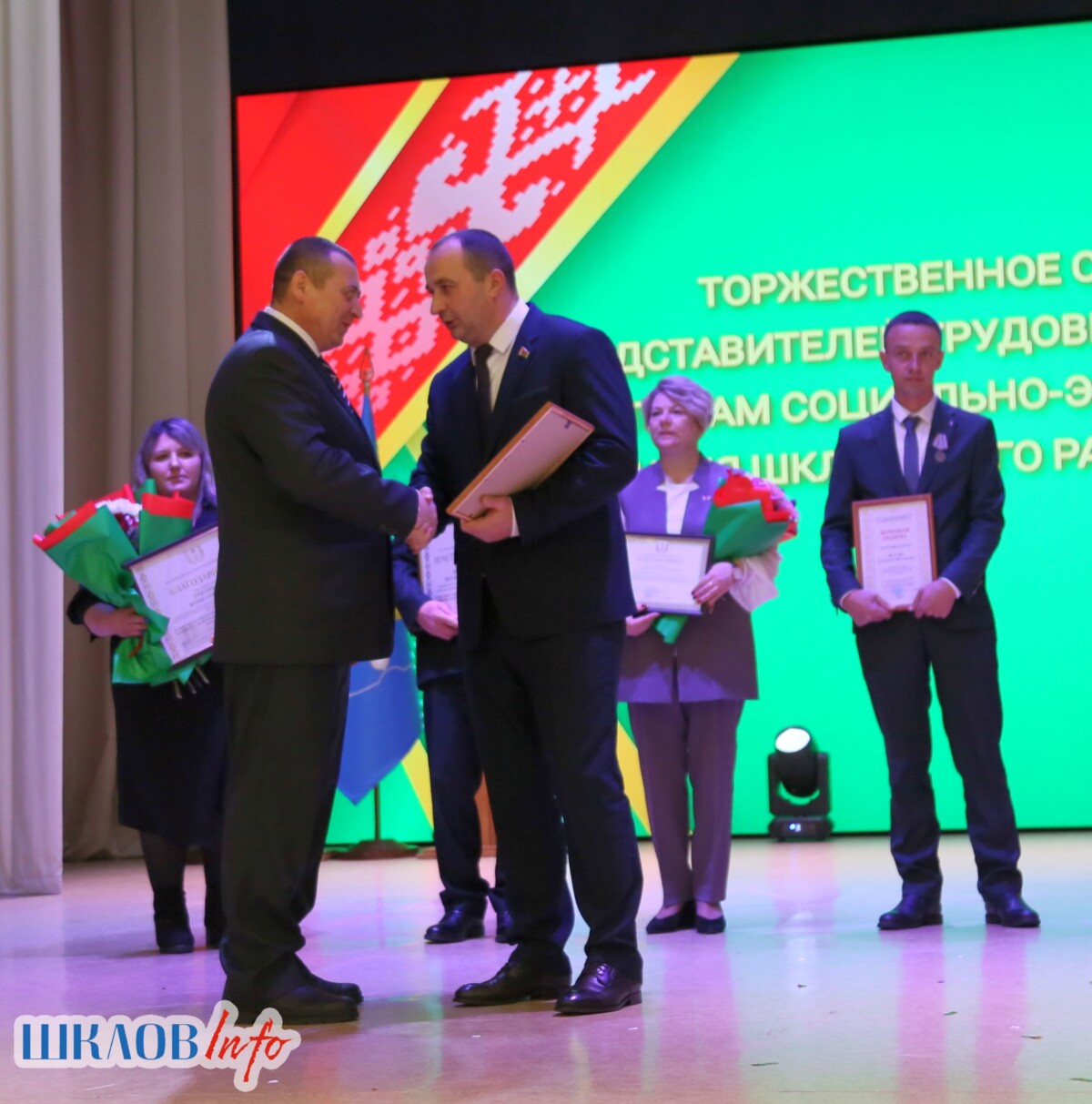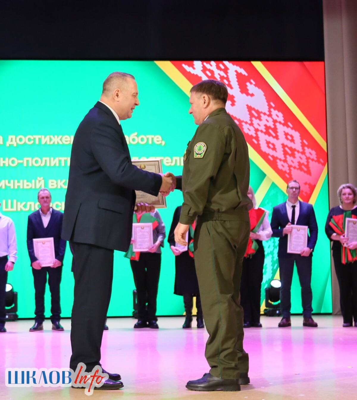 В ходе торжественного мероприятия награждены лучшие коллективы и труженики Шкловщины по итогам 2025 года. Звание «Человек года» присуждено директору ЗАО «Большие Славени» Ивану Барташевичу и ветерану труда Вере Костенко.