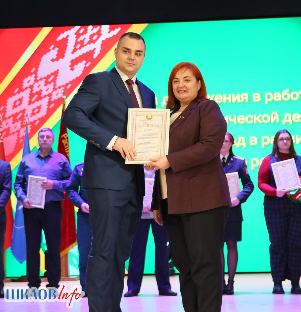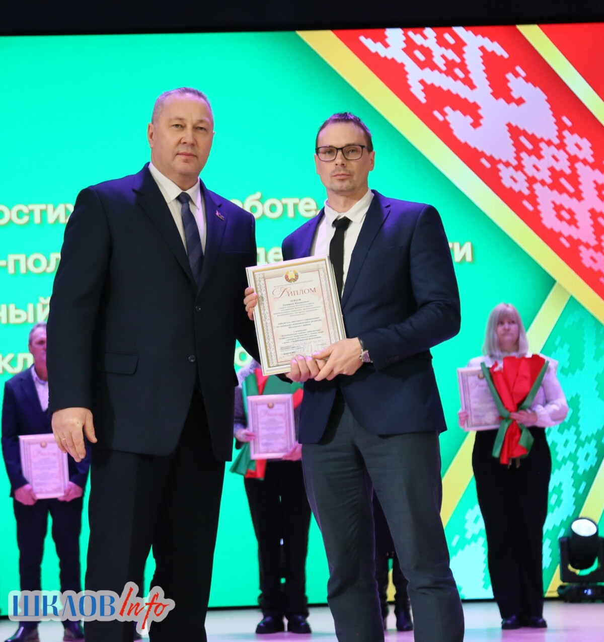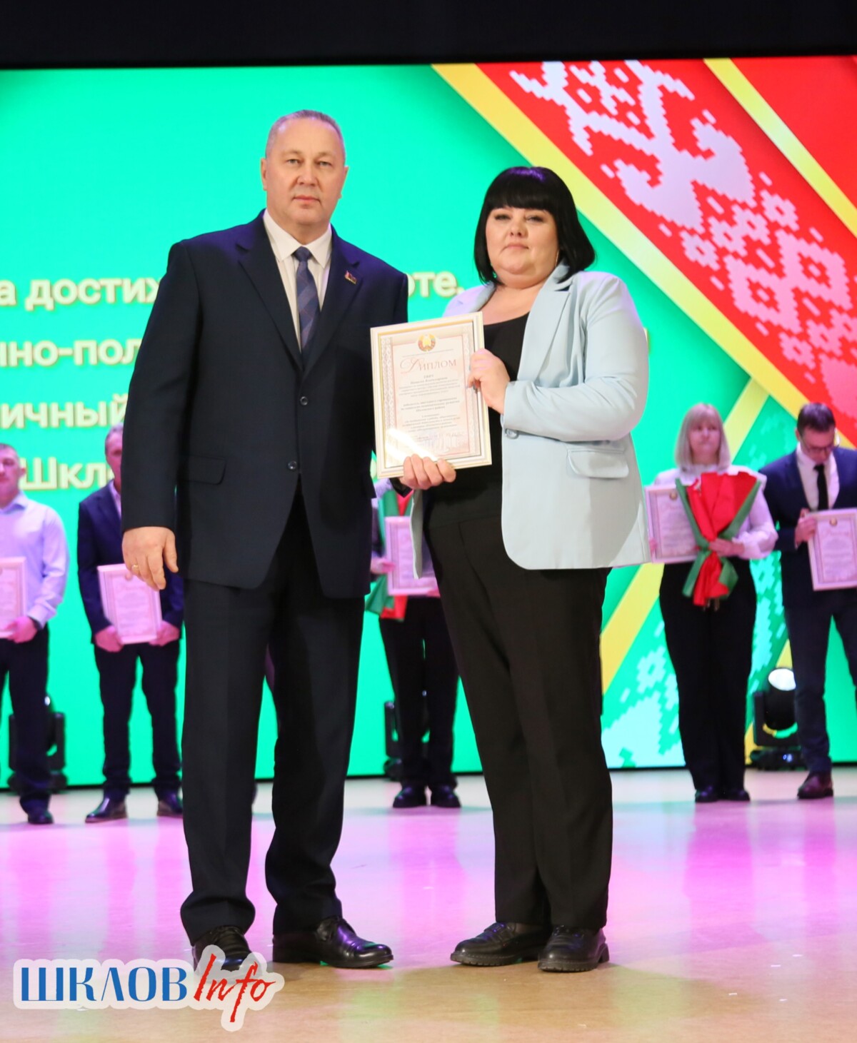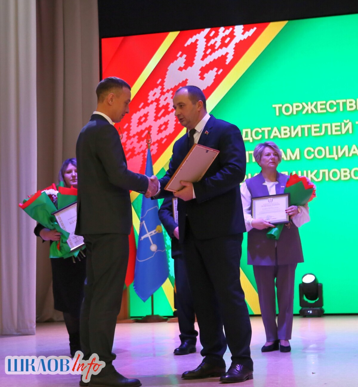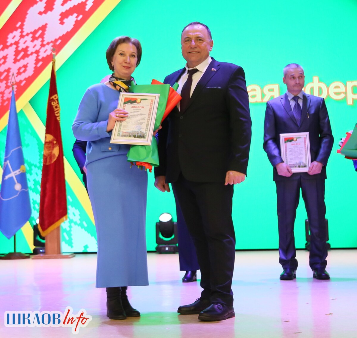 В ходе торжественного мероприятия награждены лучшие коллективы и труженики Шкловщины по итогам 2025 года. Звание «Человек года» присуждено директору ЗАО «Большие Славени» Ивану Барташевичу и ветерану труда Вере Костенко.