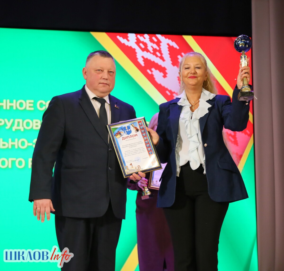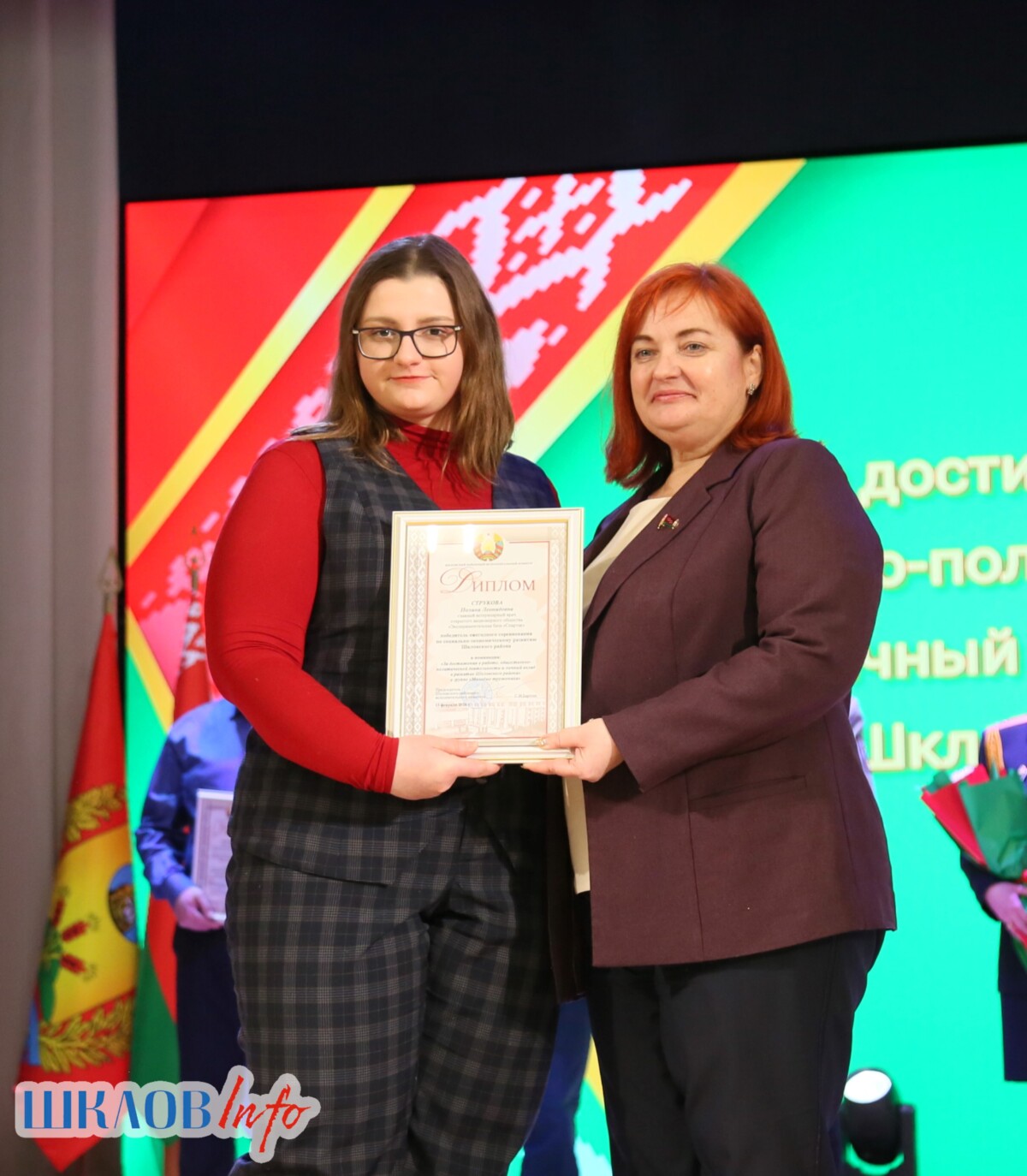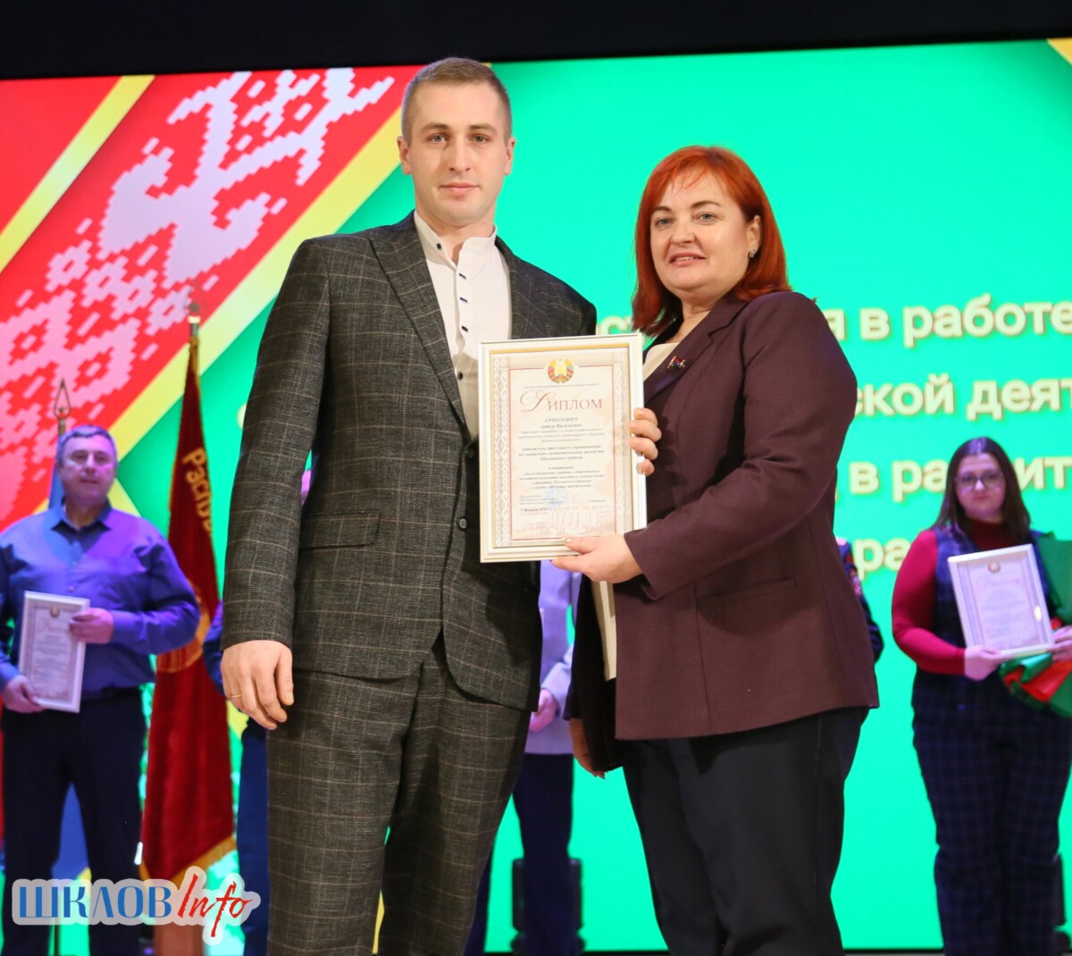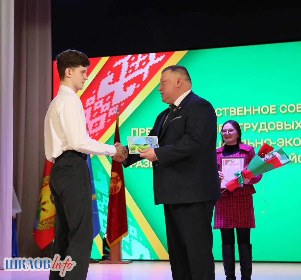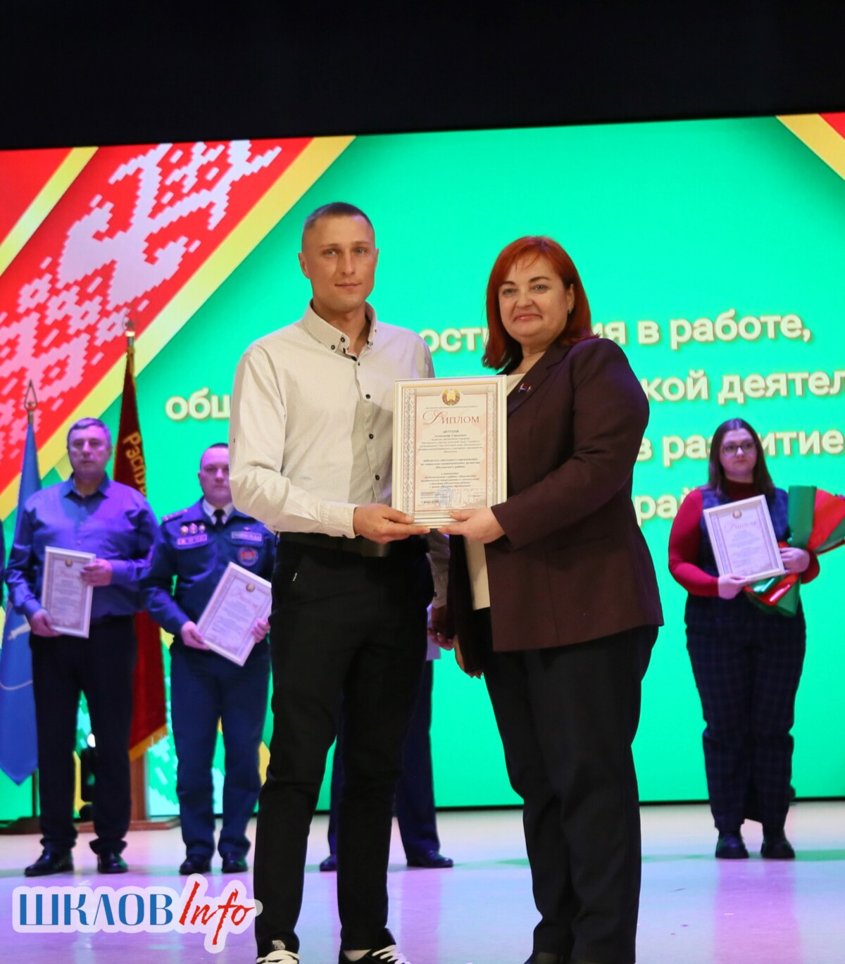 В ходе торжественного мероприятия награждены лучшие коллективы и труженики Шкловщины по итогам 2025 года. Звание «Человек года» присуждено директору ЗАО «Большие Славени» Ивану Барташевичу и ветерану труда Вере Костенко.