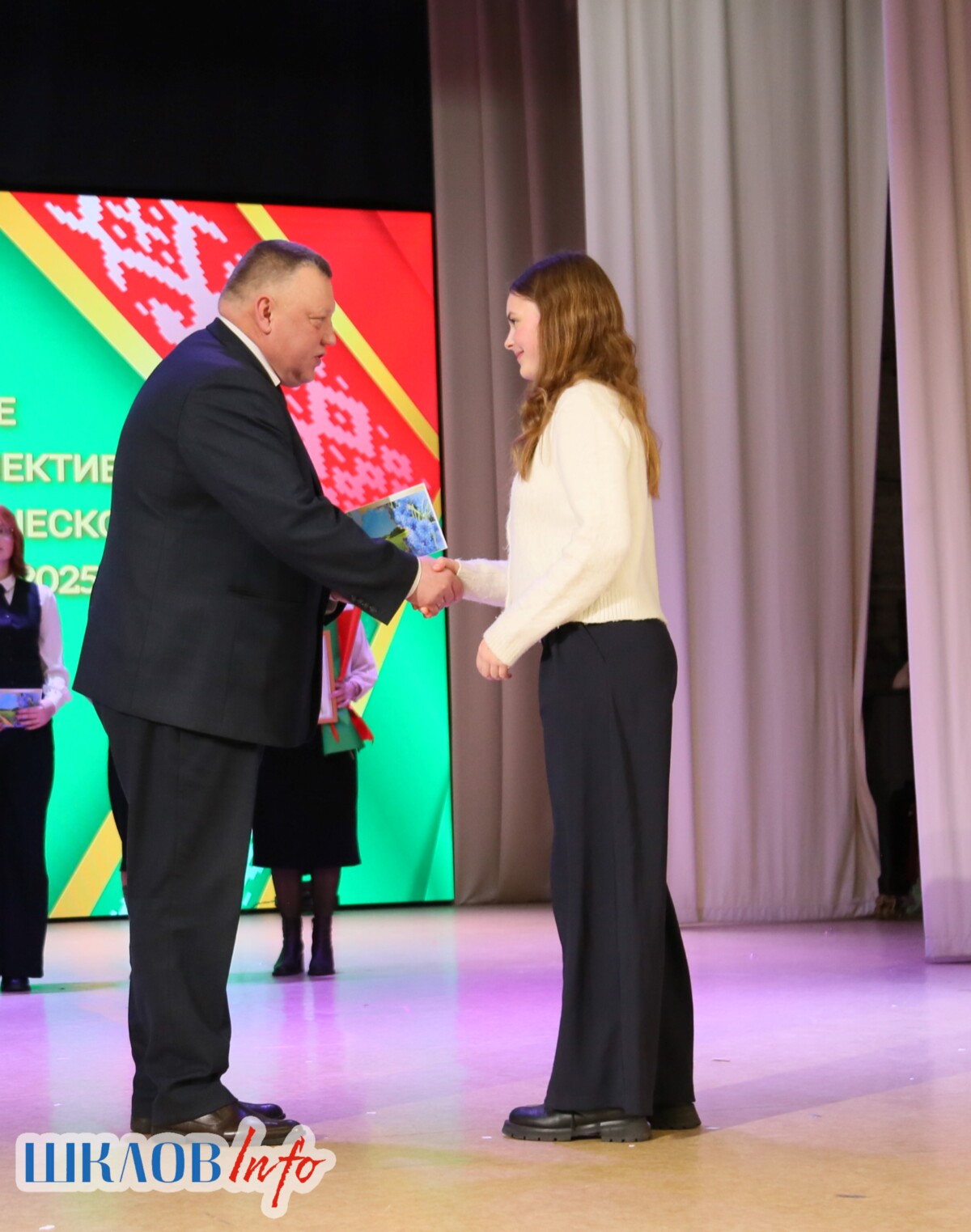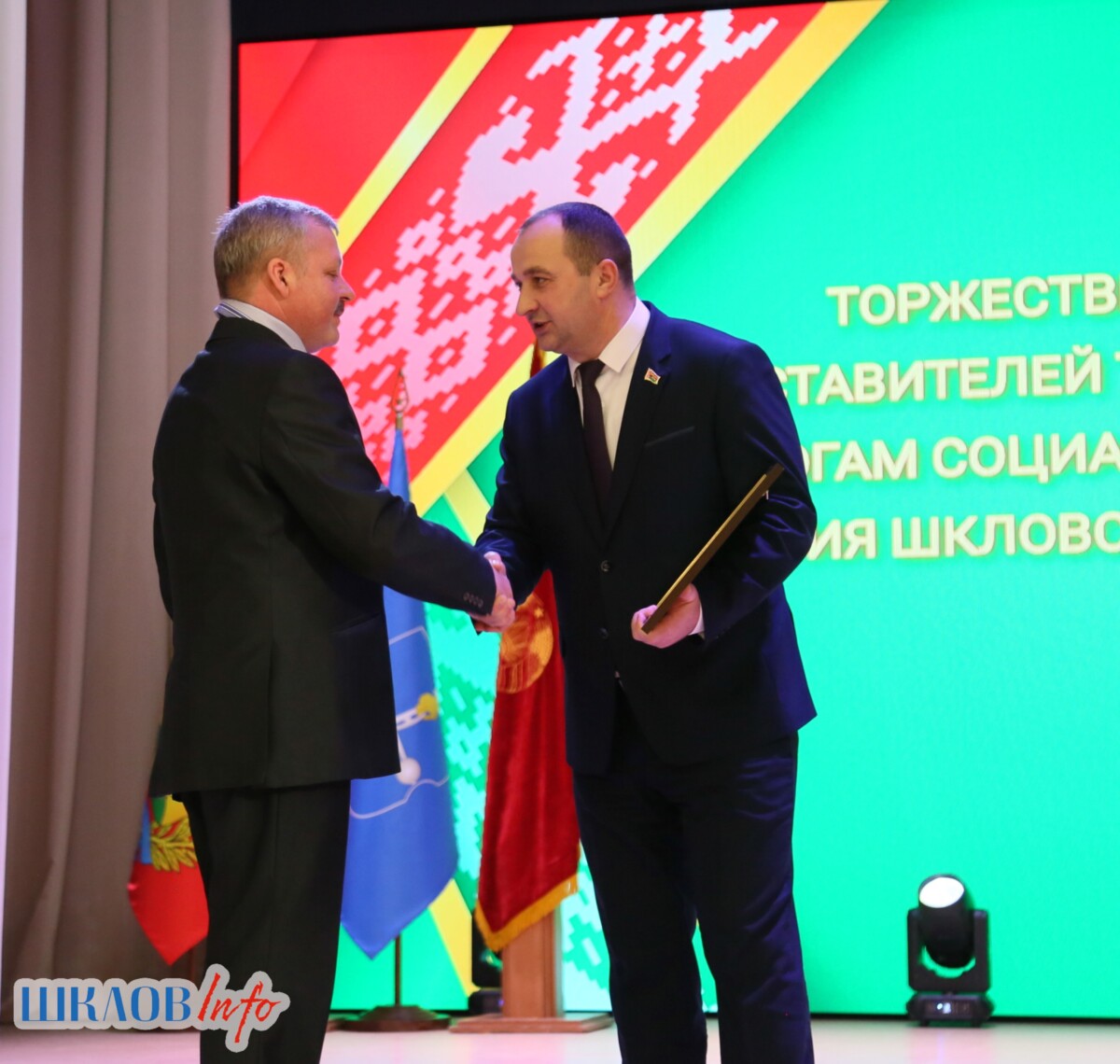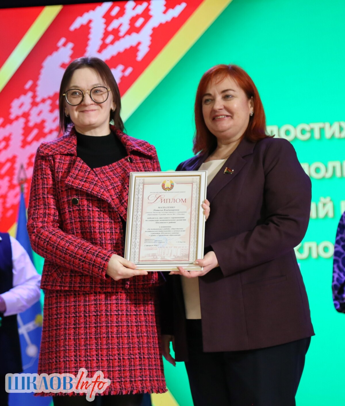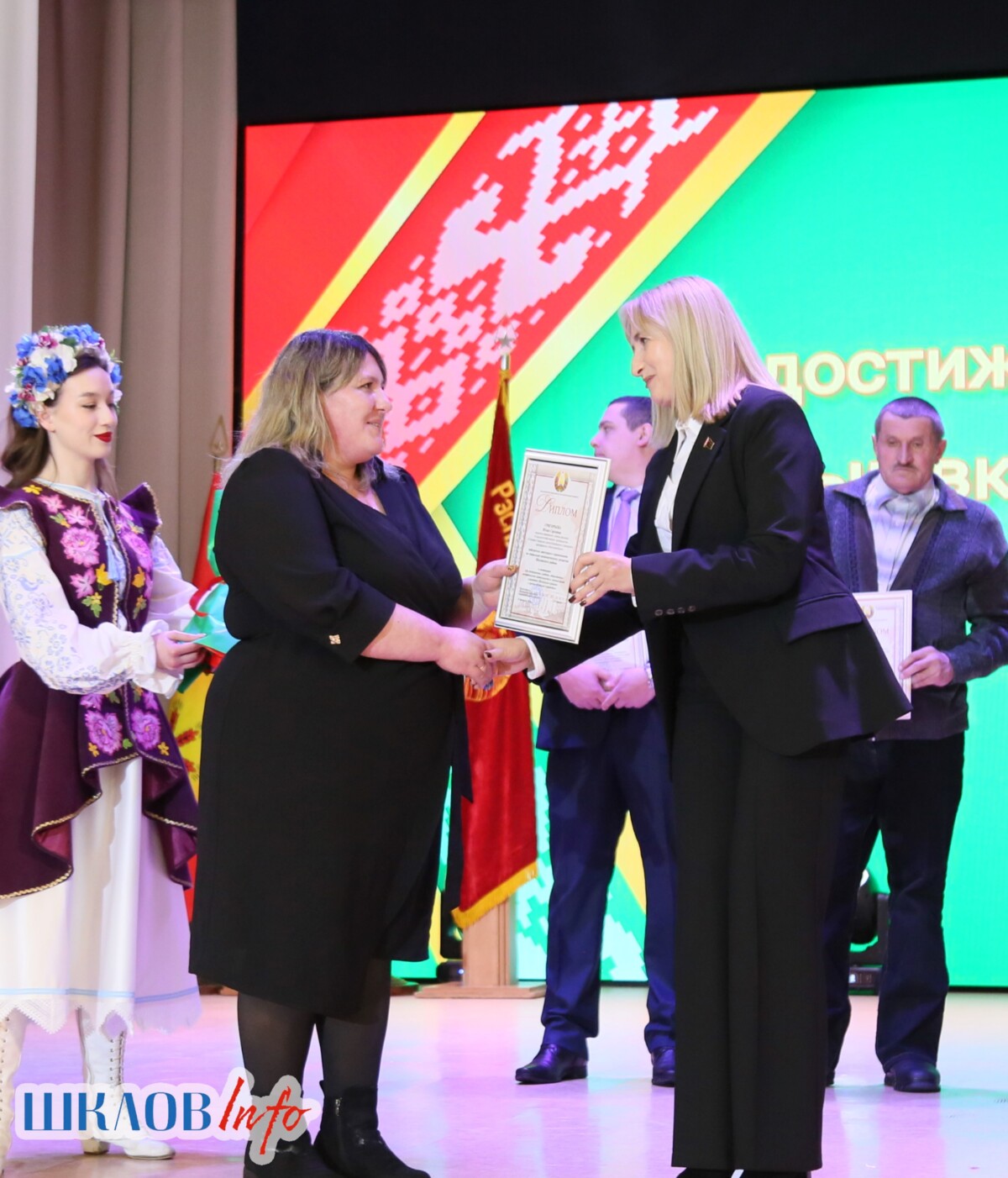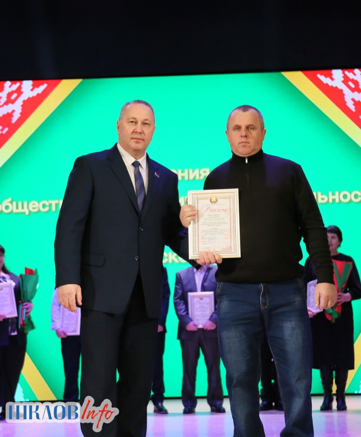 В ходе торжественного мероприятия награждены лучшие коллективы и труженики Шкловщины по итогам 2025 года. Звание «Человек года» присуждено директору ЗАО «Большие Славени» Ивану Барташевичу и ветерану труда Вере Костенко.