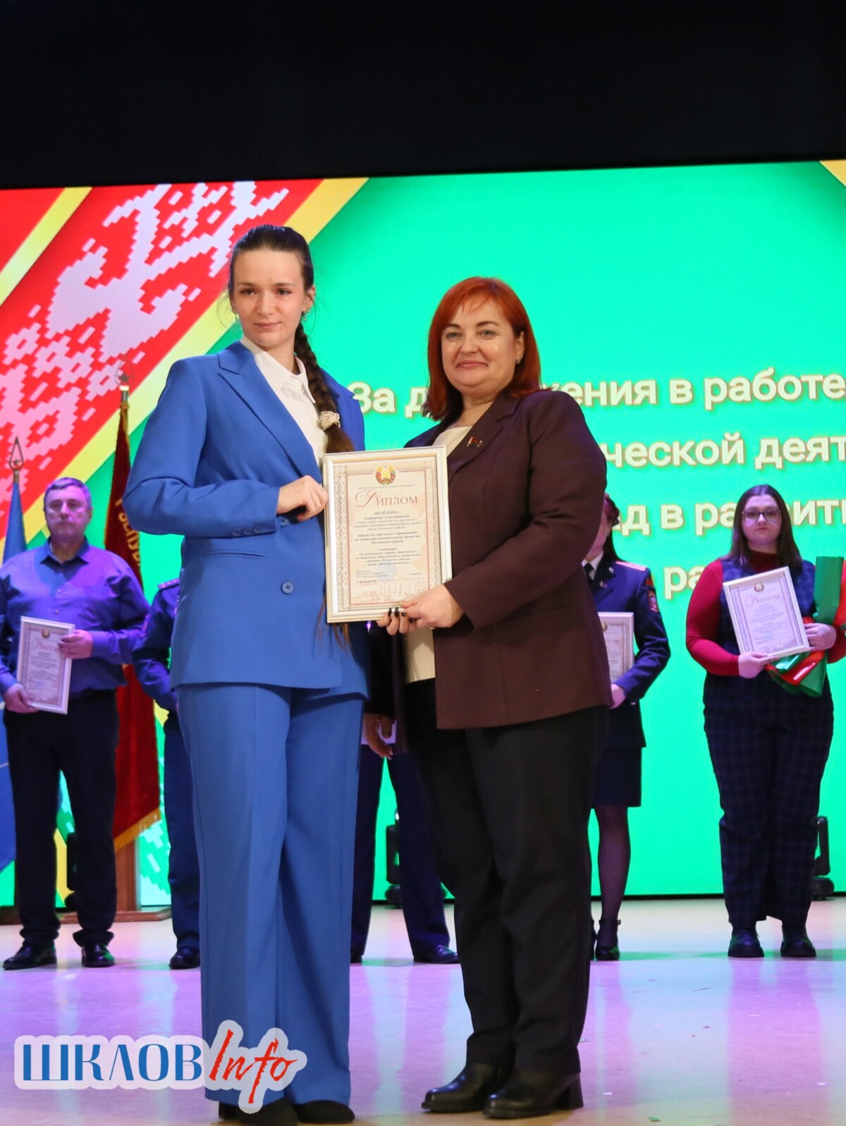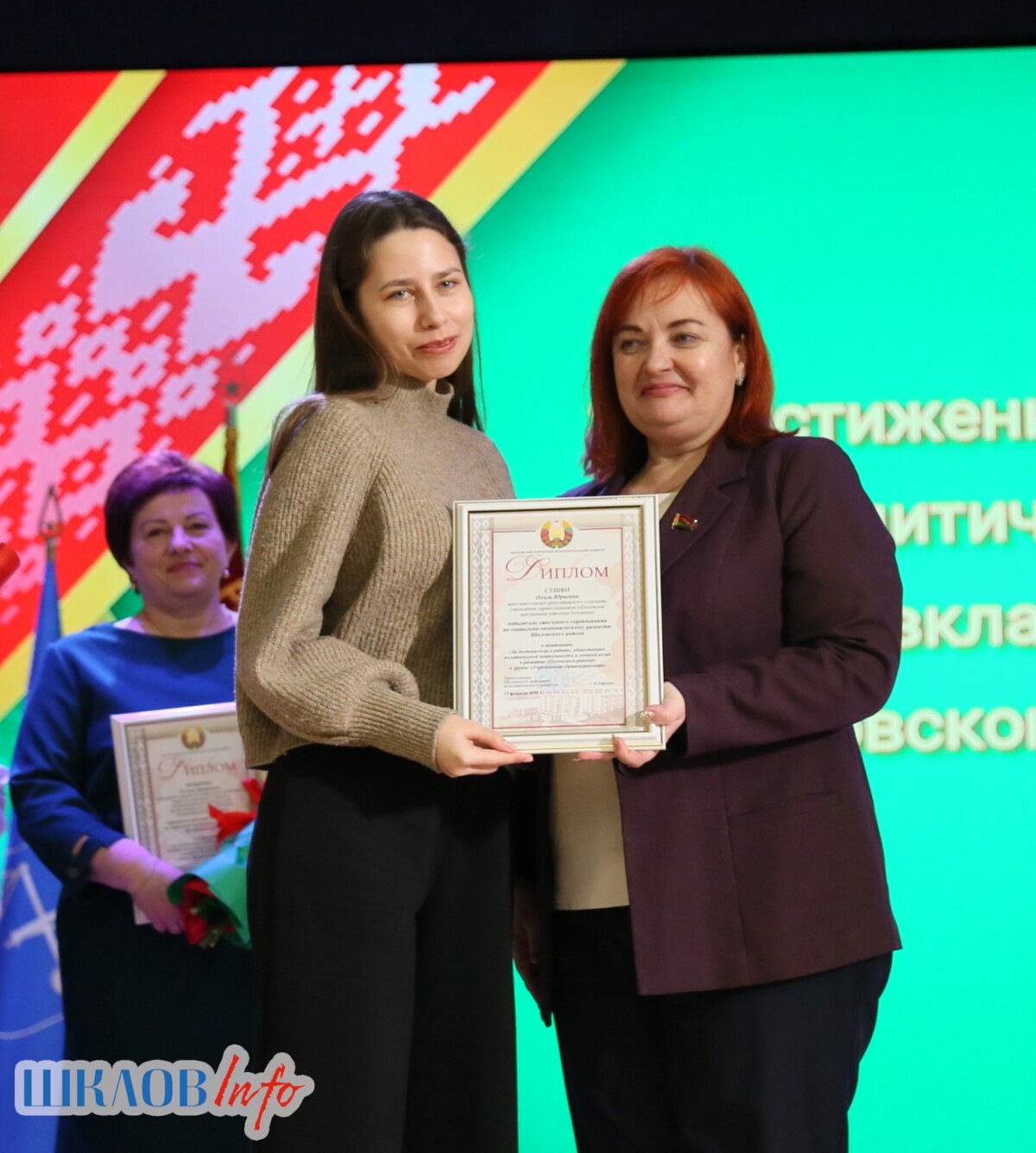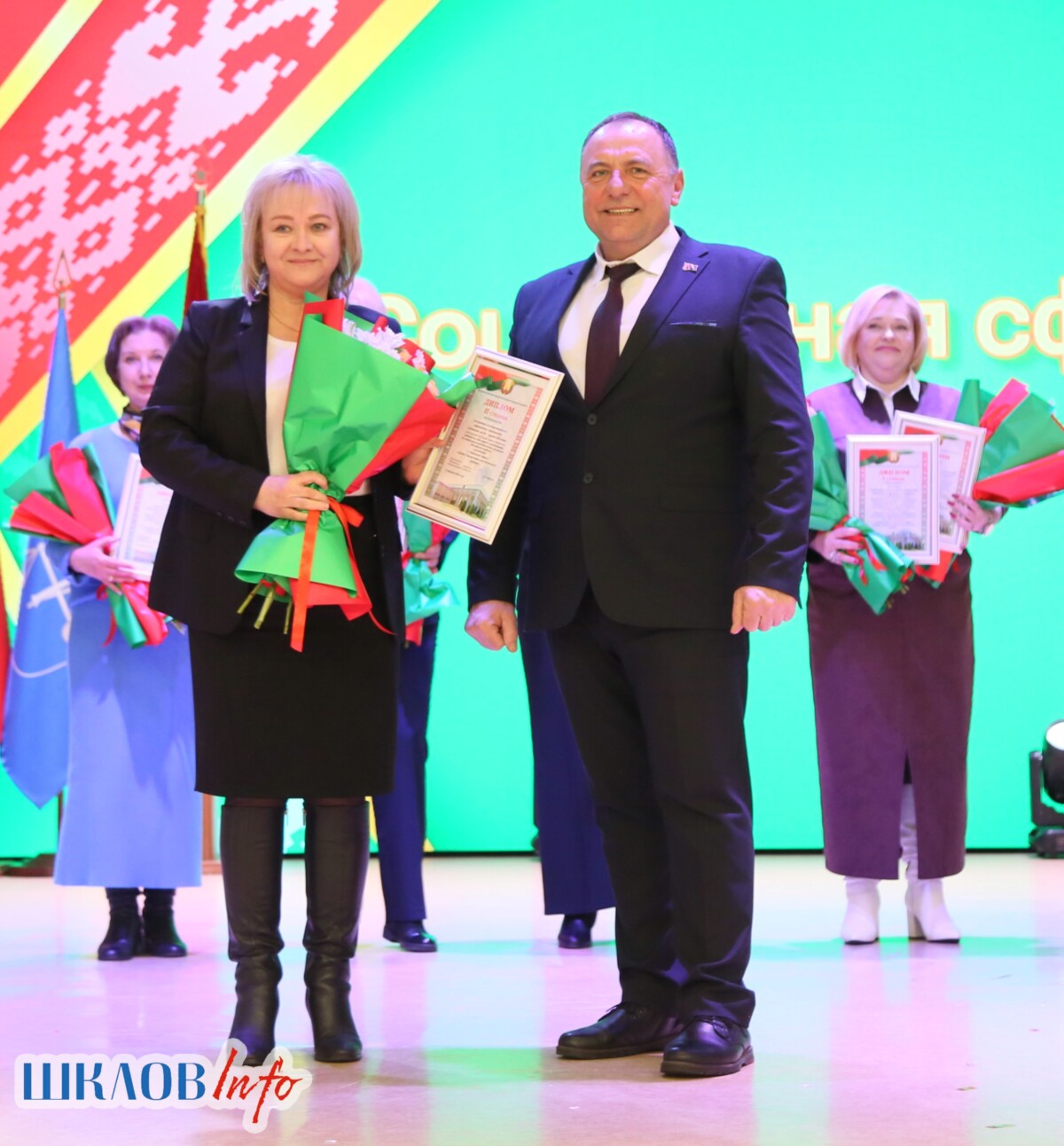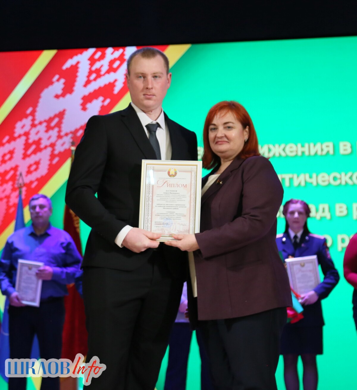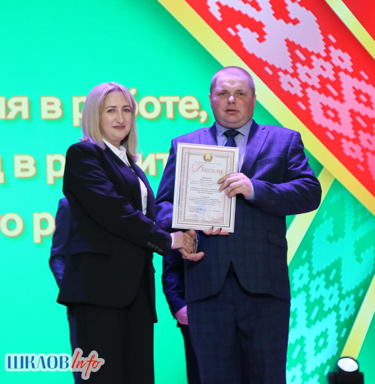 В ходе торжественного мероприятия награждены лучшие коллективы и труженики Шкловщины по итогам 2025 года. Звание «Человек года» присуждено директору ЗАО «Большие Славени» Ивану Барташевичу и ветерану труда Вере Костенко.