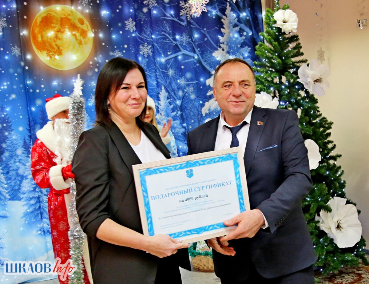 Новый год не бывает без подарков. Руководитель района вручил директору центра Людмиле Аникеевой сертификат на укрепление материально-технической базы учреждения, а детям – сладкие подарки. Поддержку центру оказали и постоянные спонсоры: ОАО «Шкловский маслодельный завод» и волонтерский отряд «Факел» ИУОТ №49.