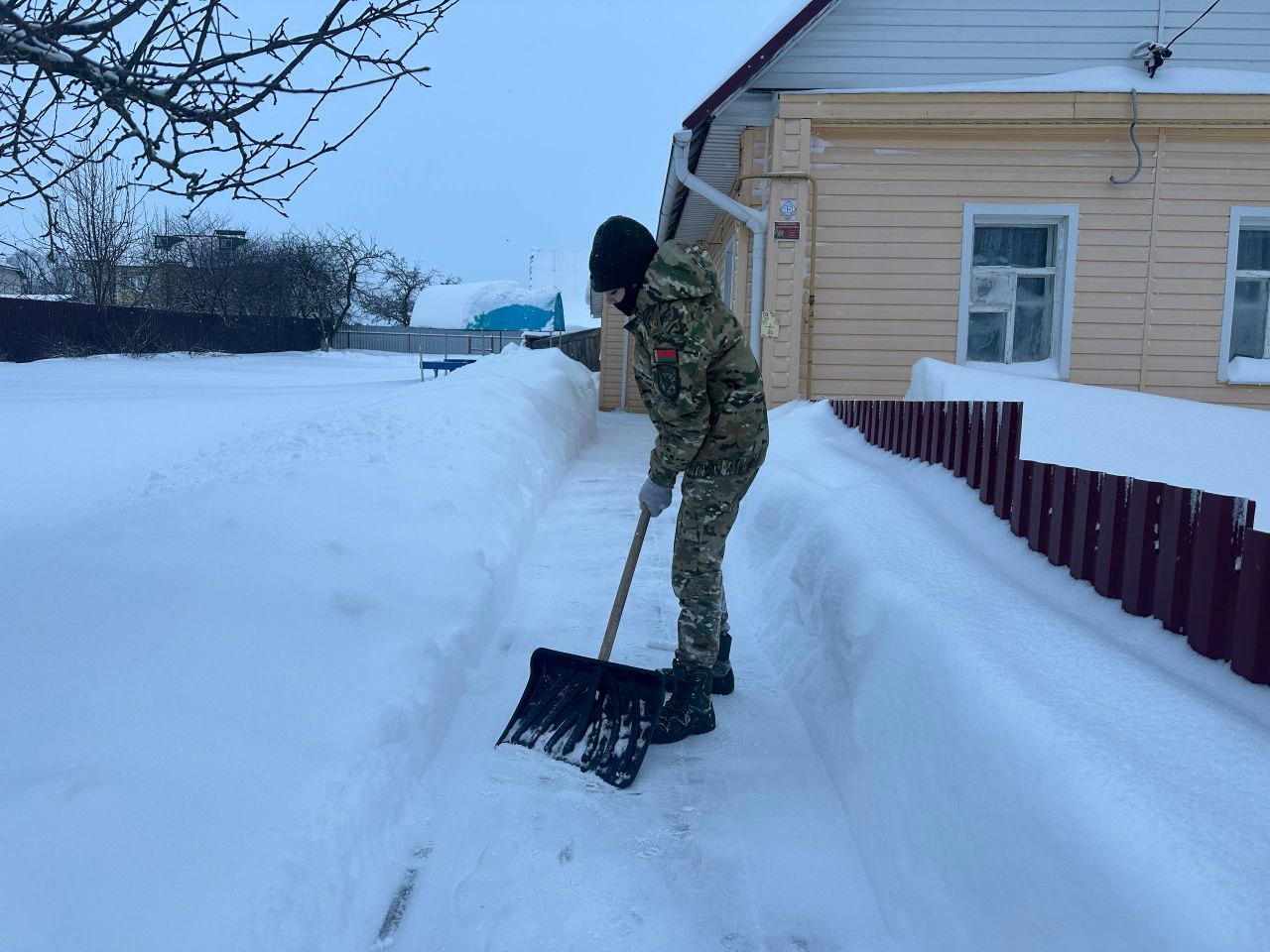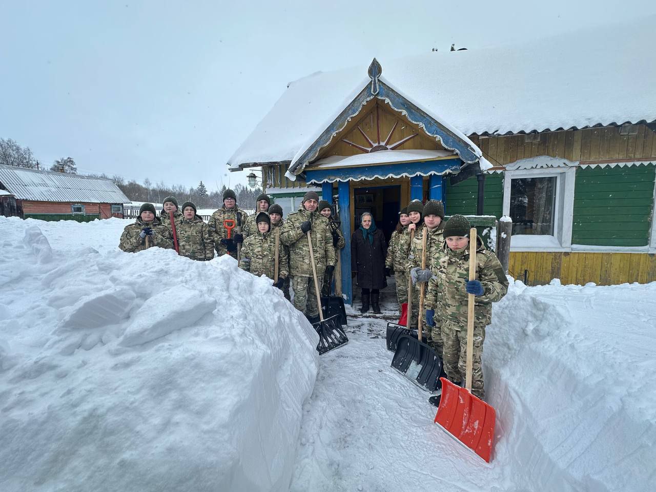 В условиях мощного циклона «Улли» ребята вышли на борьбу со снегом, чтобы помочь пожилым людям.