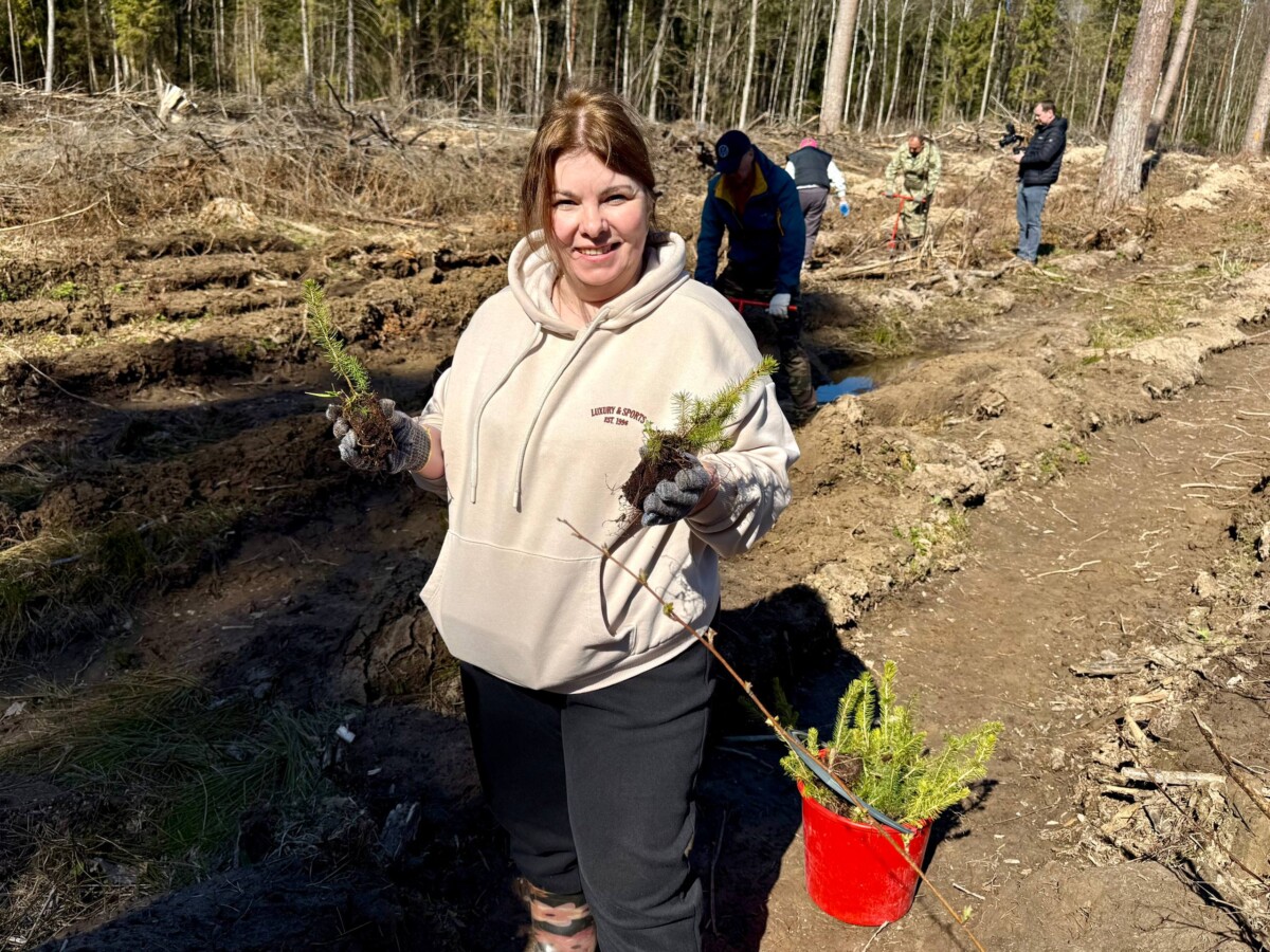 Вблизи деревни Хилец члены районного исполнительного комитета и работники райисполкома обновили лесной фонд саженцами ели и ольхи.